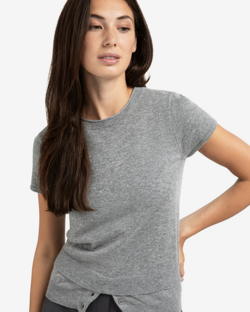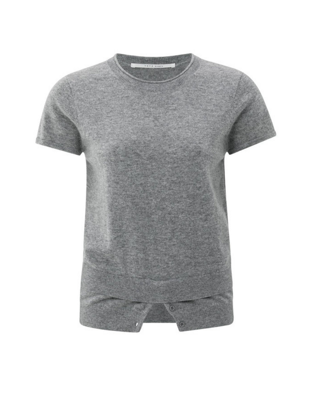 Haut en maille à manches courtes avec double ourlet et boutons décoratifs.