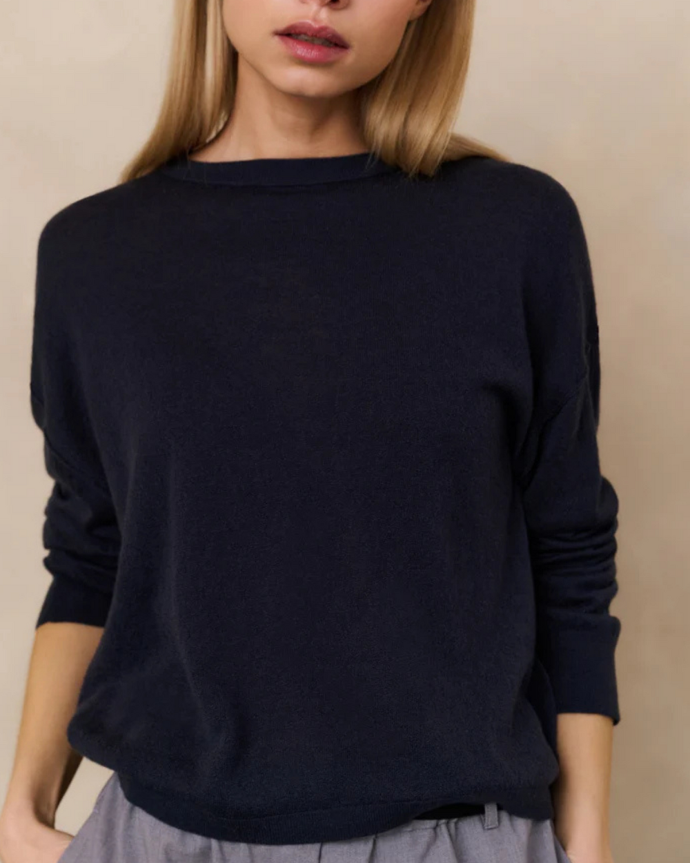Pull texturé à col rond et à manches longues