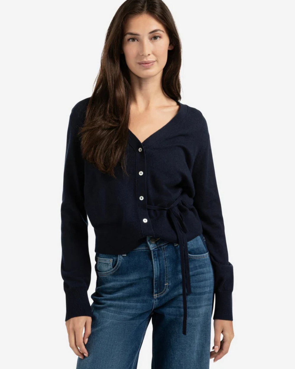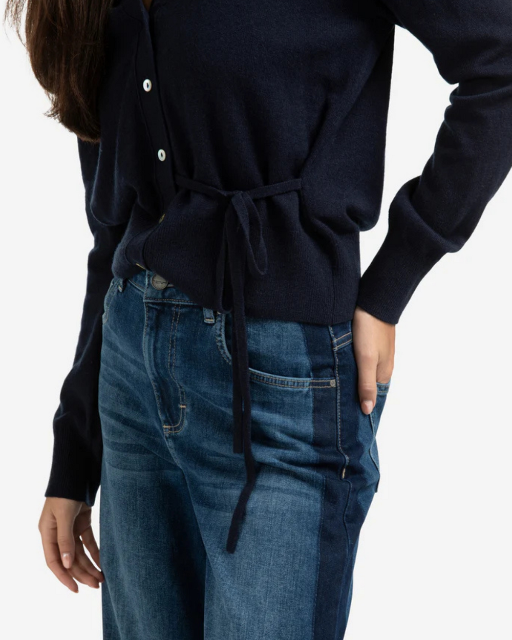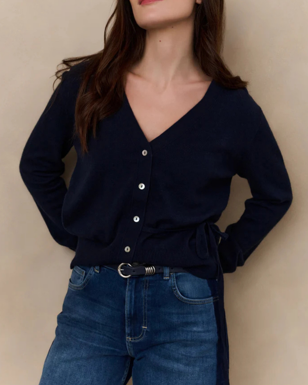 Cardigan à noeud autour de la taille.