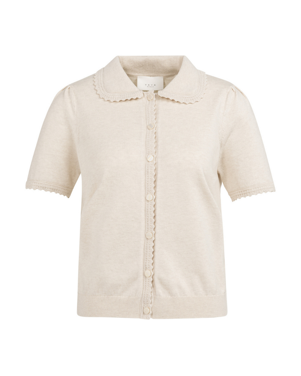 Cardigan boutonné à manches courtes et texture.