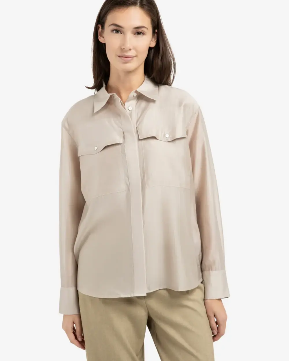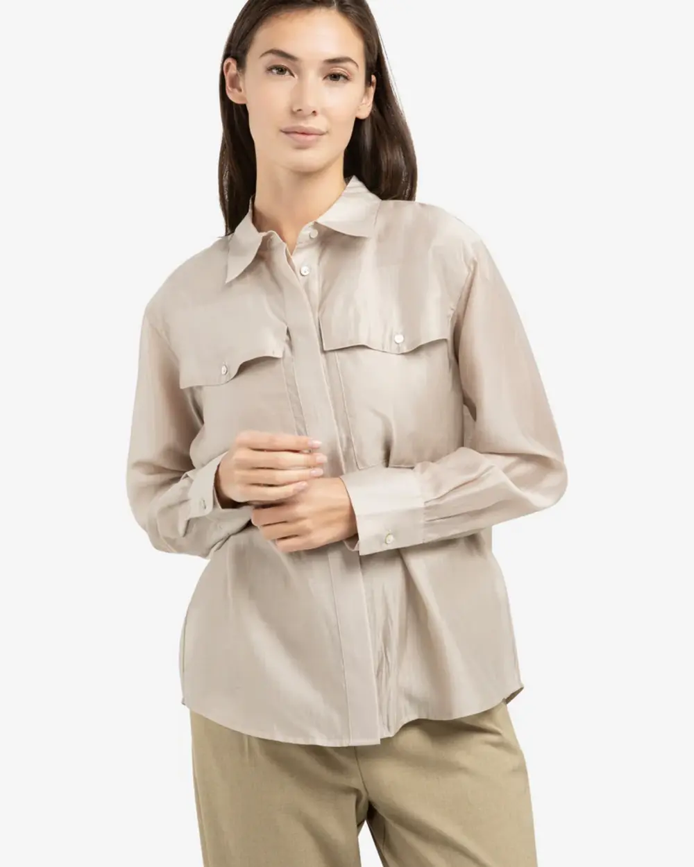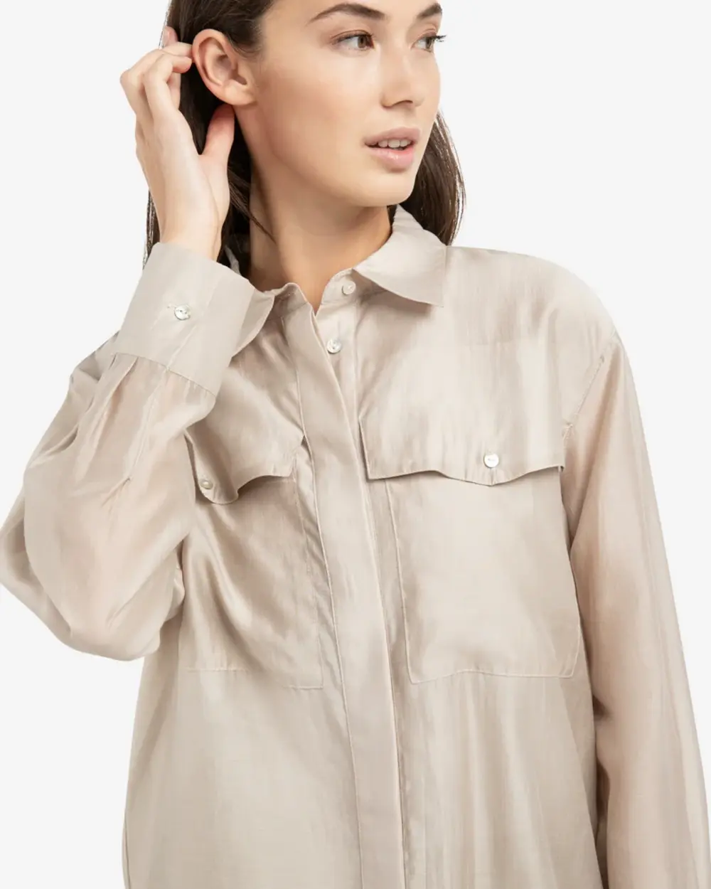 Chemisier transparent avec poche poitrine