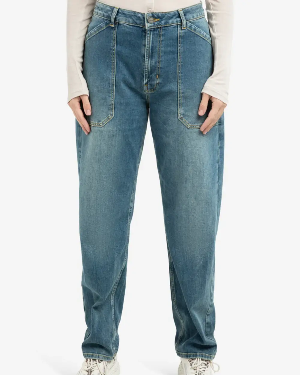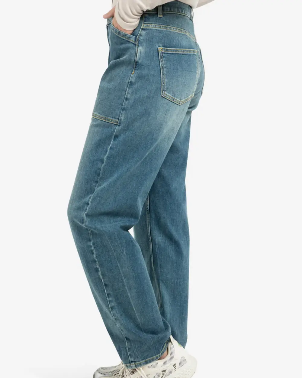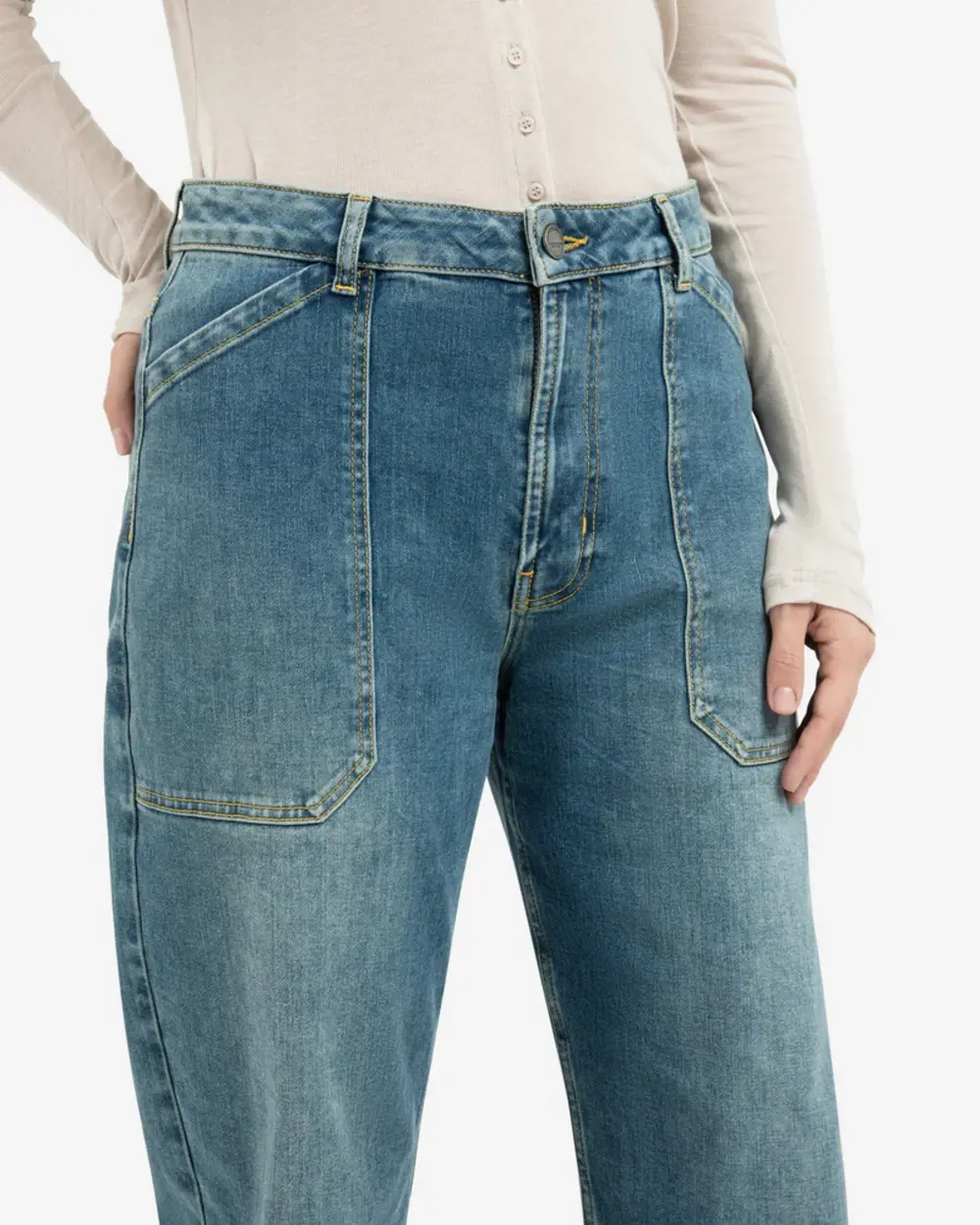 Jeans cargo taille haute, entrejambe bas et jambes larges.