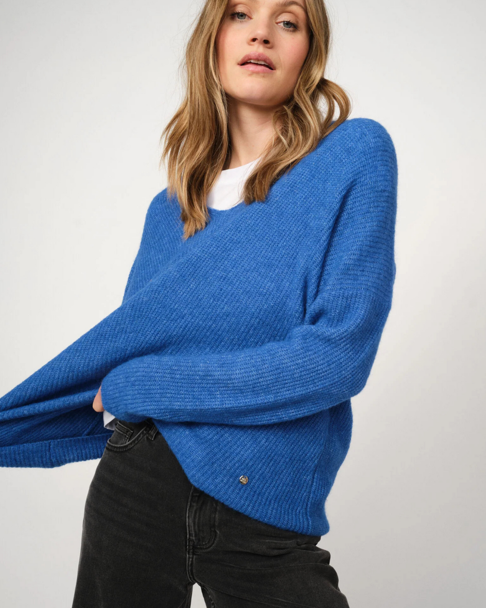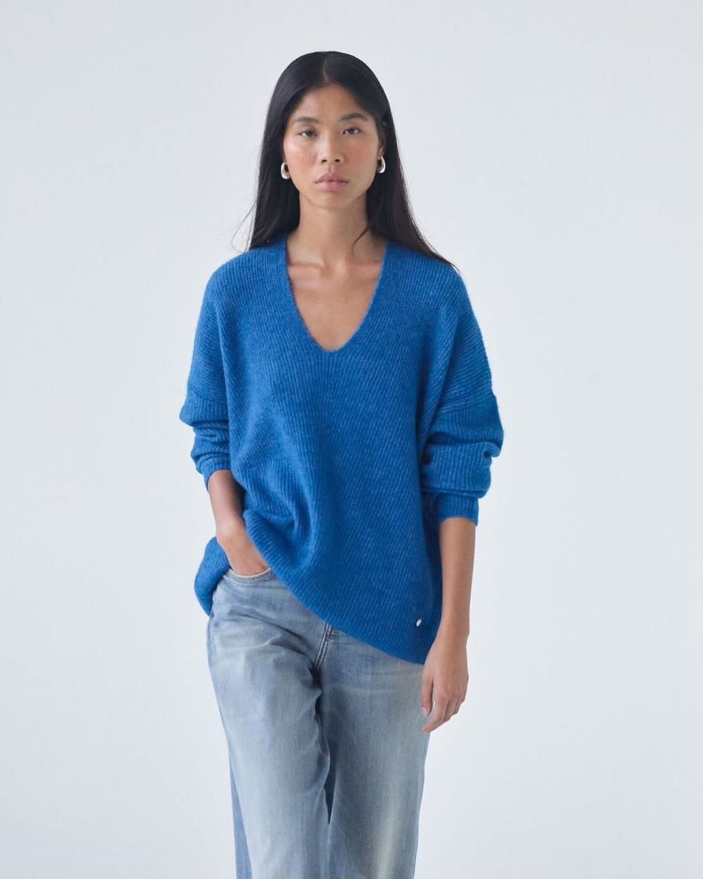 Pull à encolure en V et à manches raglan confectionné à partir d'un doux mélange de laine et alpaca.