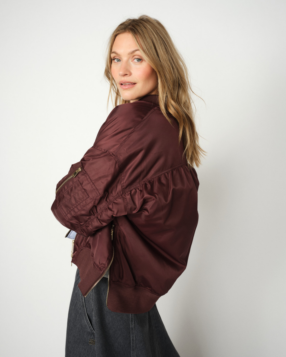 Une veste bomber est indispensable pendant les mois de transition. elle-ci est dotée d'une doublure matelassée et est conçue dans une matière lisse, avec des poches tendance, un pli à l'arrière, une fermeture à glissière, un col, un ourlet et des poignets élastiqués.