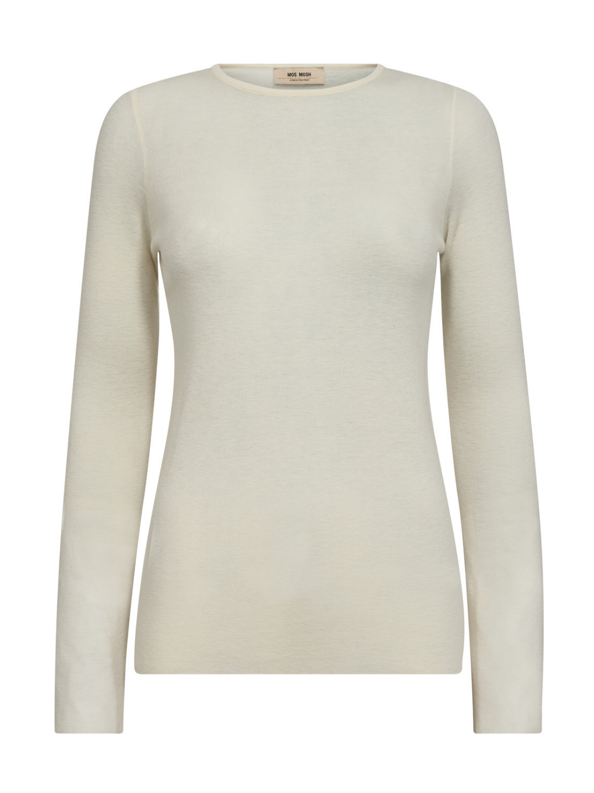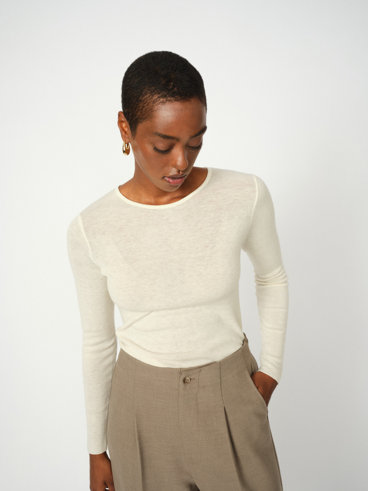 Tricot à manches longues à col rond fait de laine légère très douce.