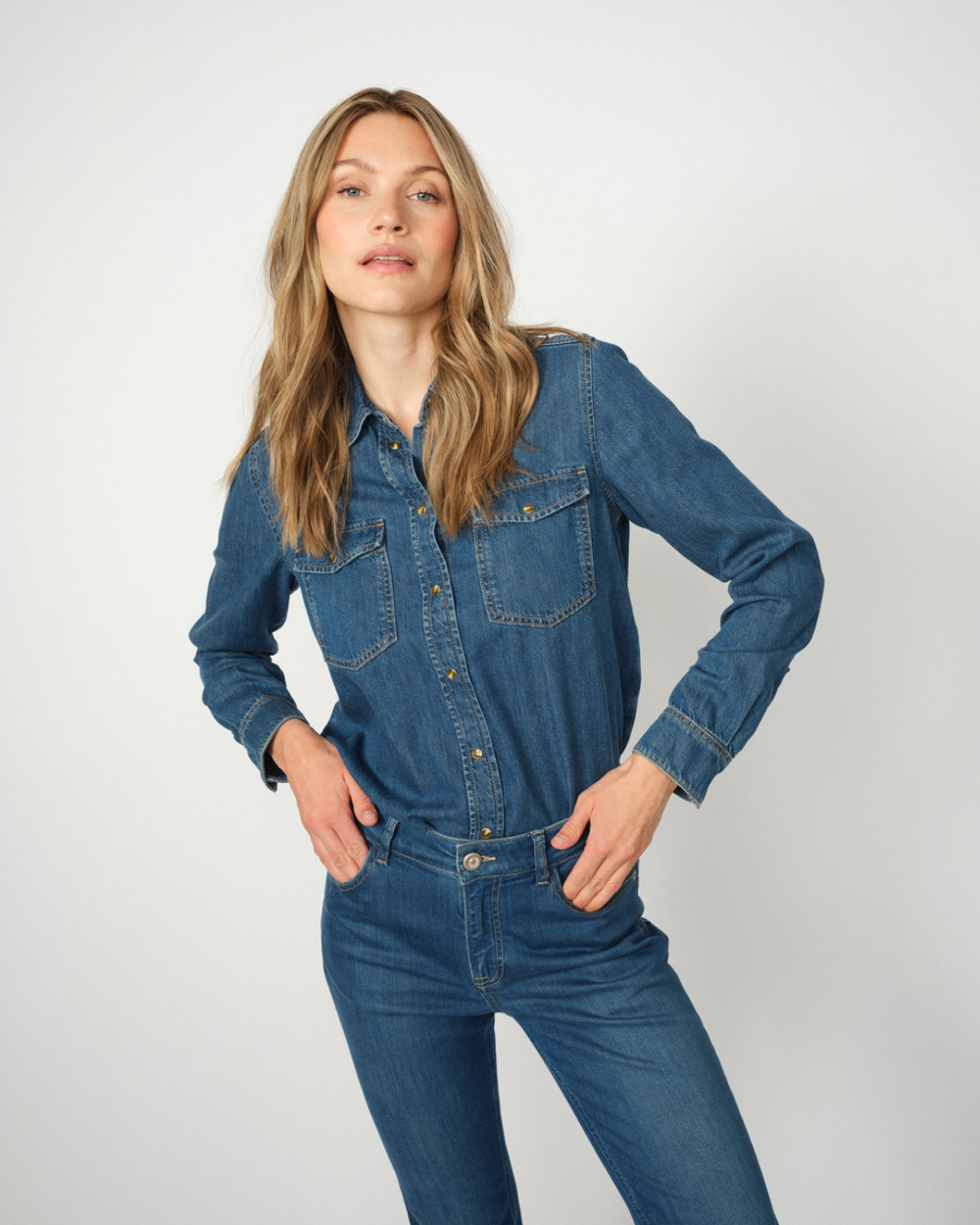 Chemise en jean souple avec fermeture à bouton-pression et poches avant