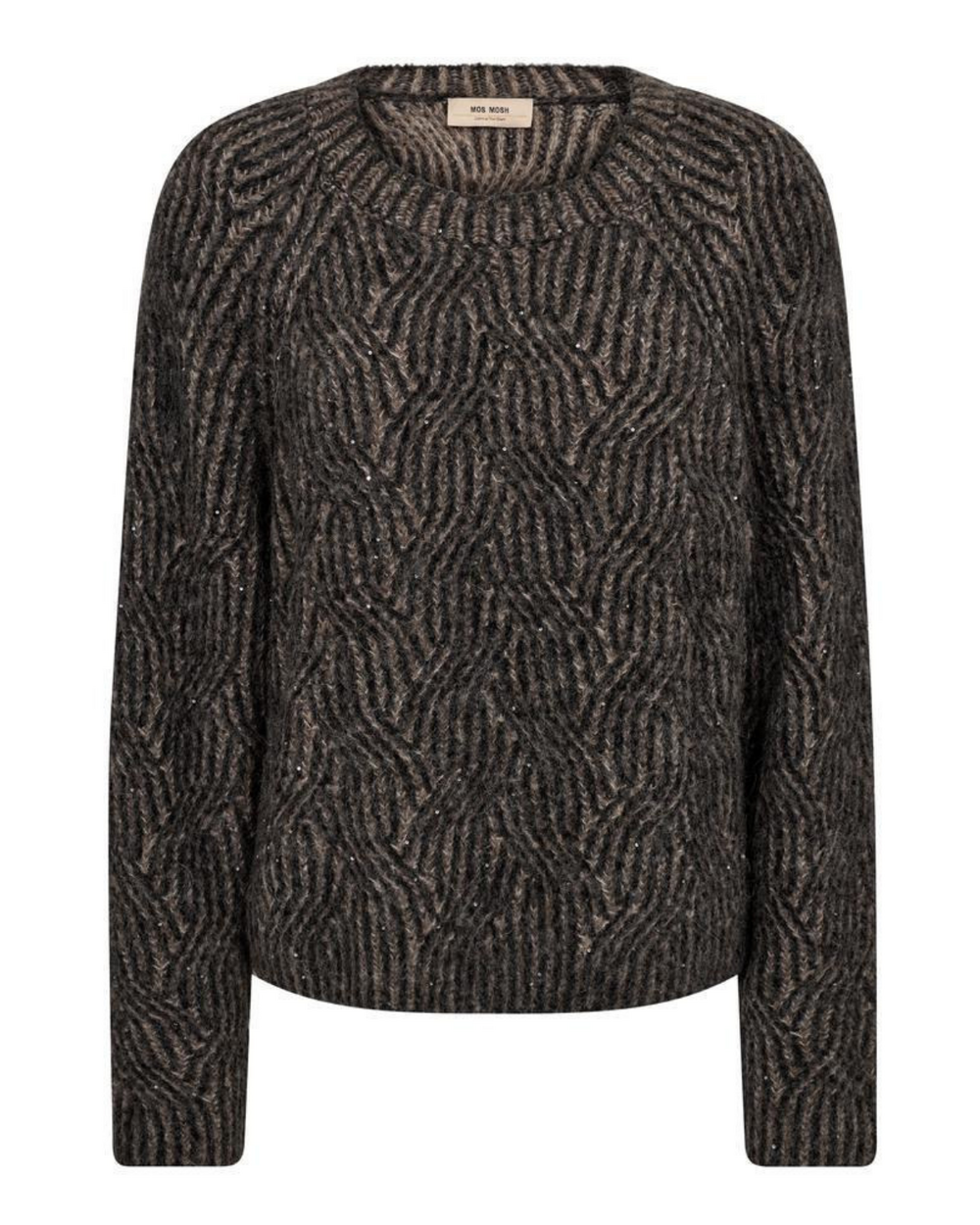 Pull à col rond de coupe décontractée, tricot unique agrémenté de fibres métalliques brillantes