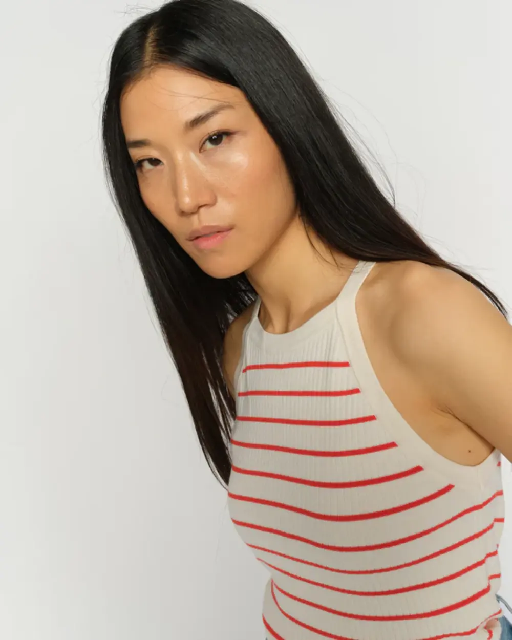 Haut sans manches en tricot à encolure haute et rayures horizontales