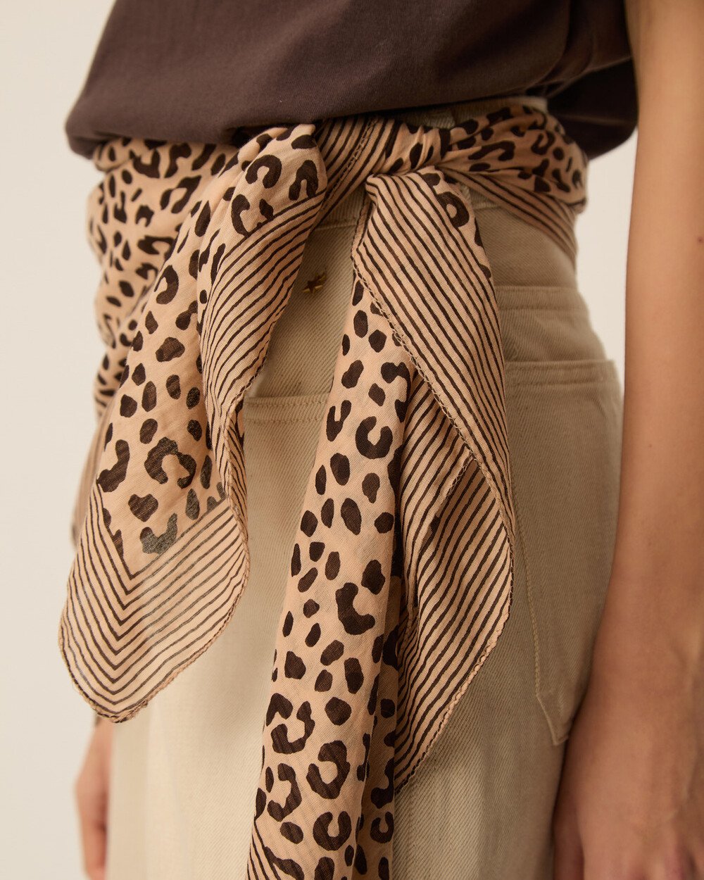Écharpe carrée en voile de coton léger pouvant être portée autour du cou, comme accessoire pour les cheveux ou comme ceinture.