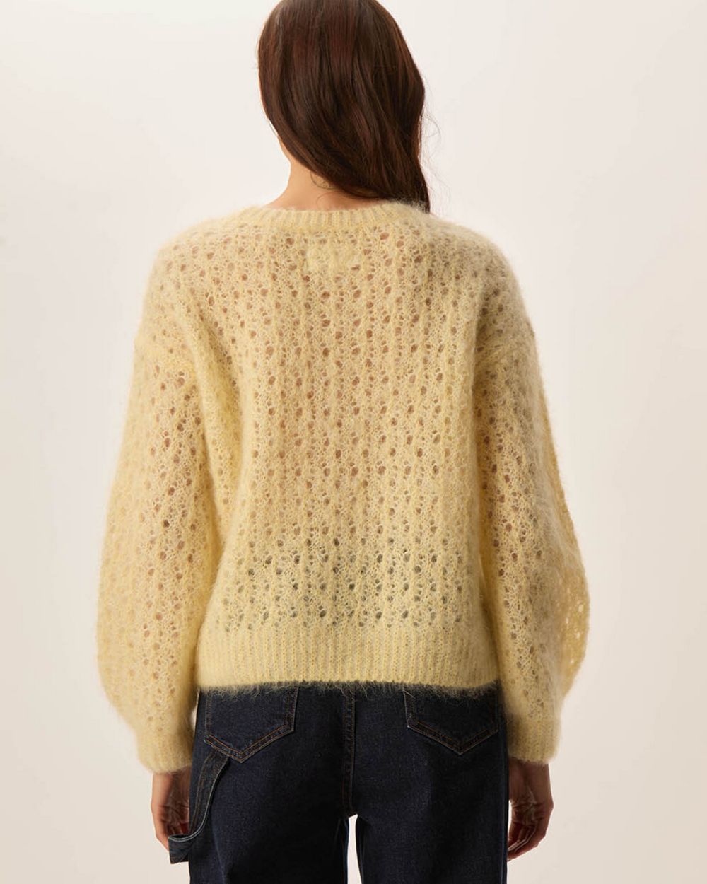 Bon à savoir : Le pull Chimon est fabriqué à partir de fil italien exclusive à Des Petits Hauts, issu de filières certifiées RMS et RWS, garantissant le respect du bien-être animal et des pratiques responsables tout au long de la chaîne de production.