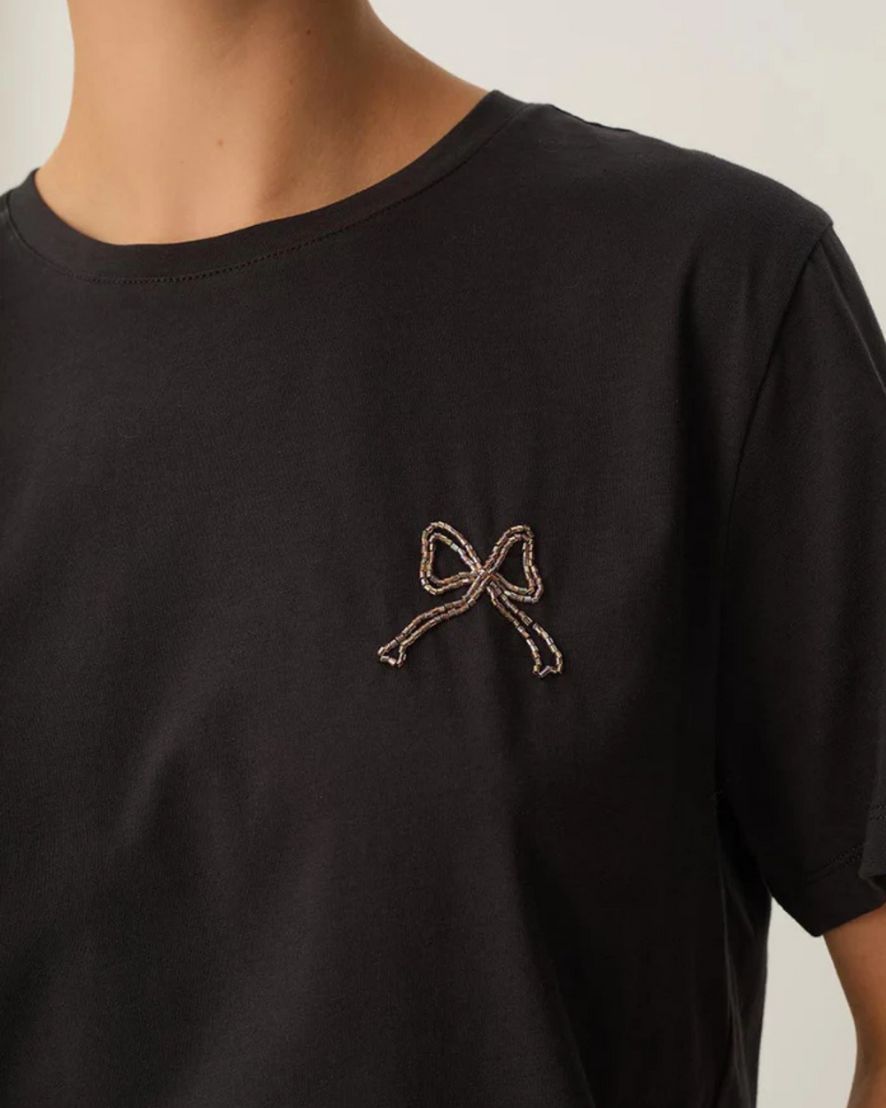 T-shirt en coton avec noeud en billes brodé sur le devant.
