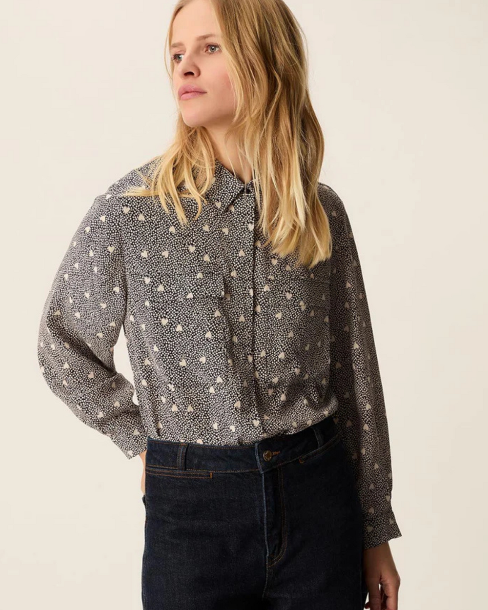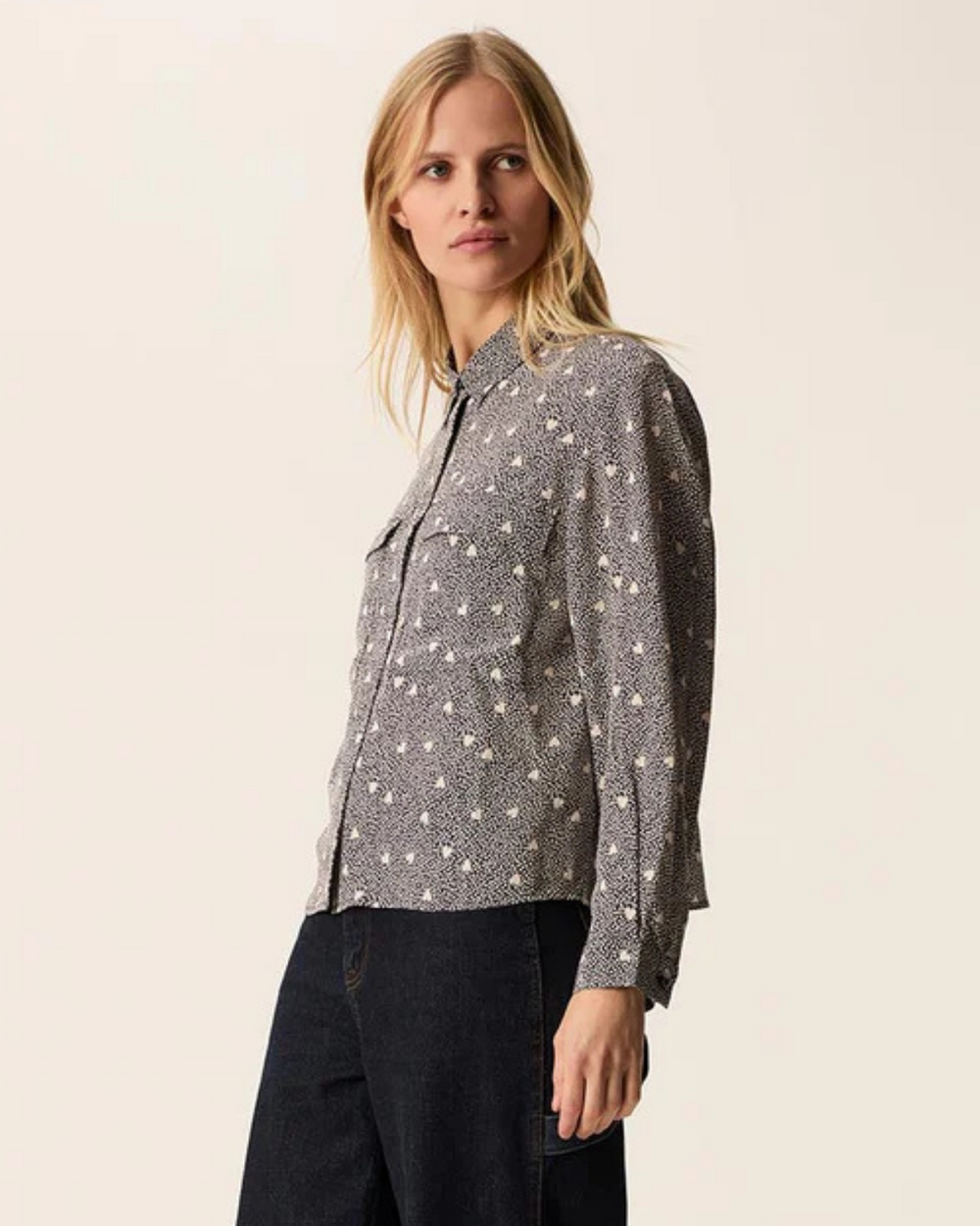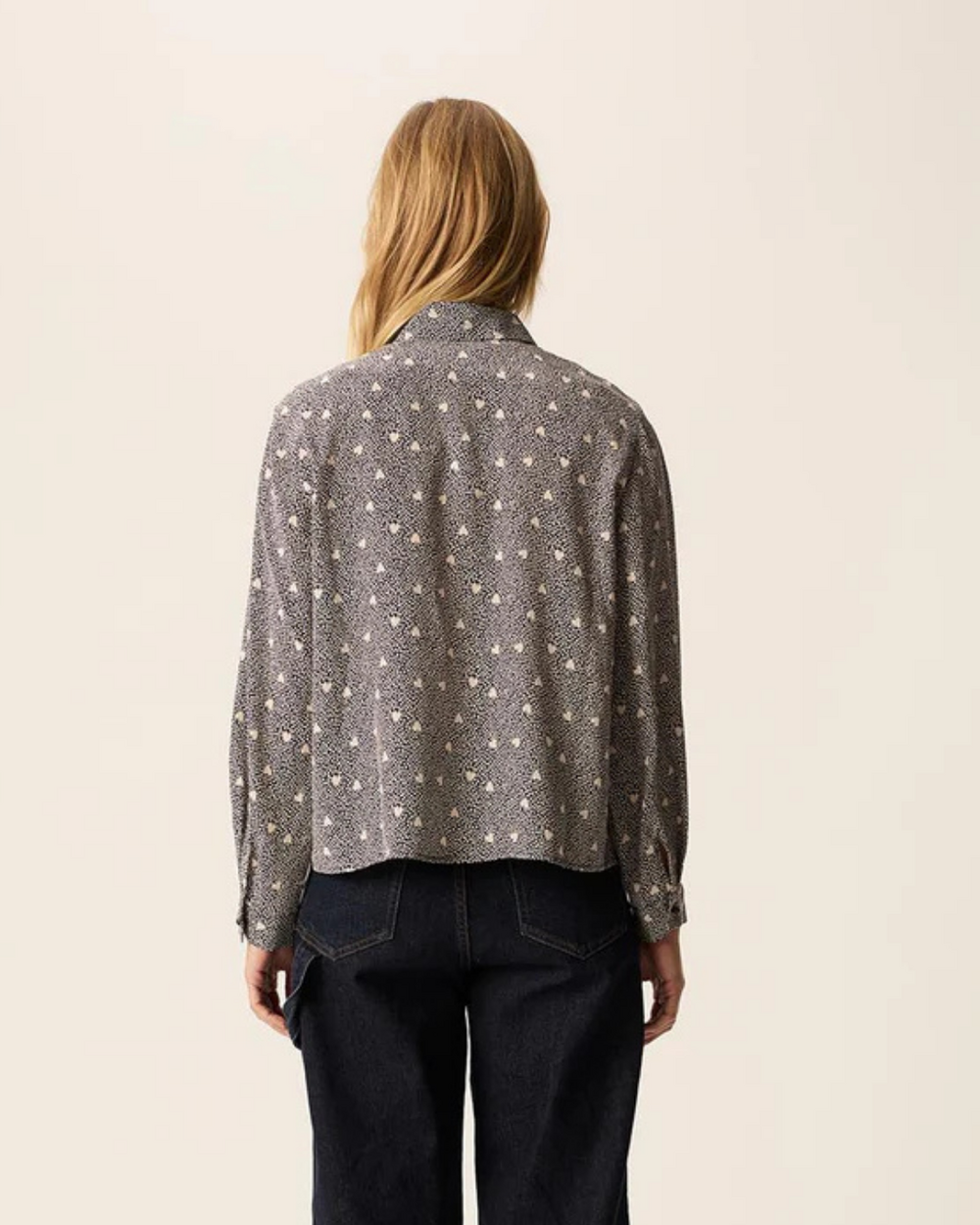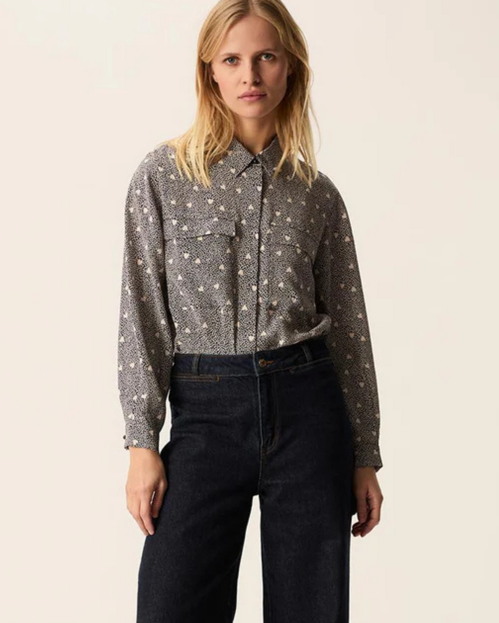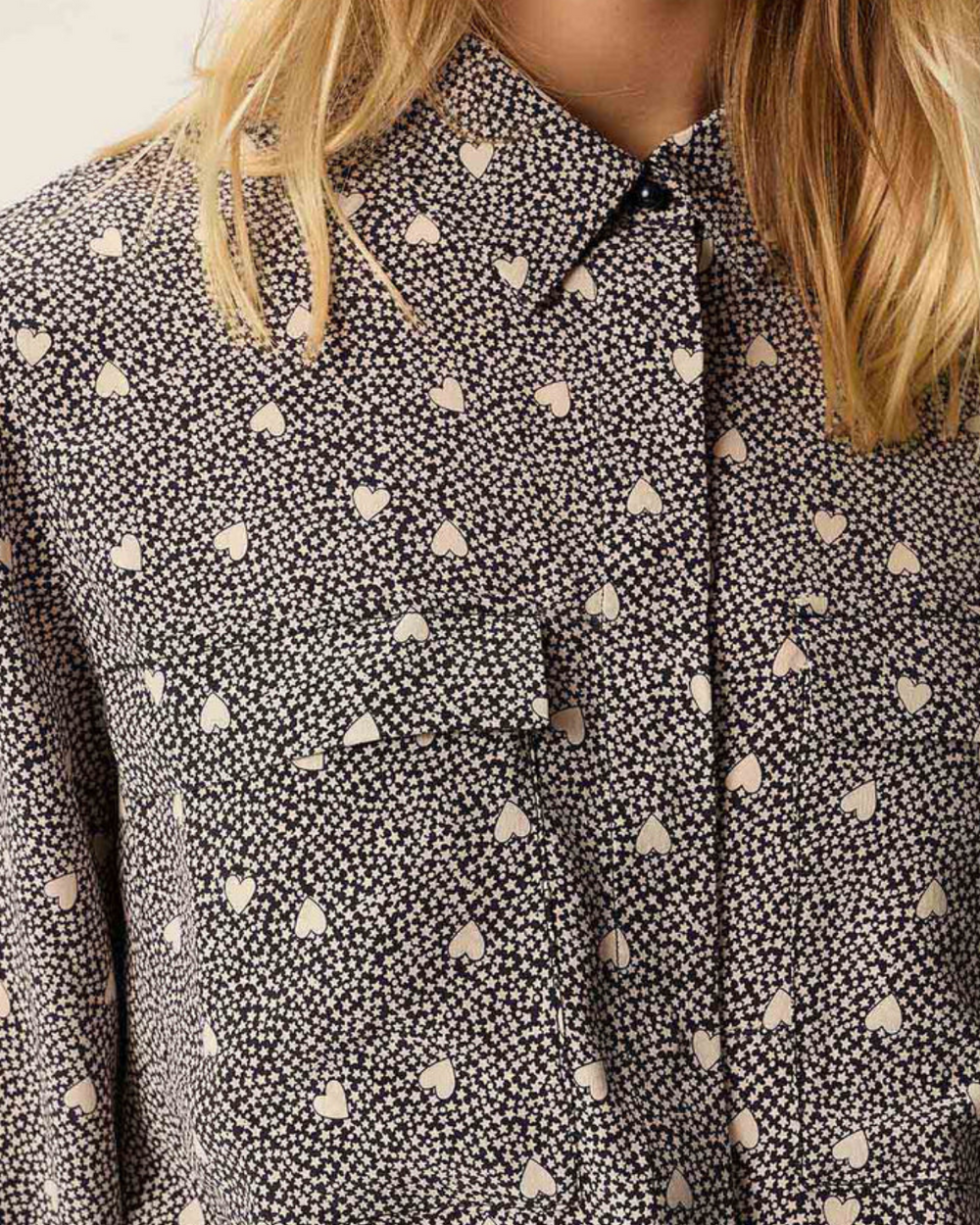 Superbe blouse en soie avec des détails en forme de petits cœurs.