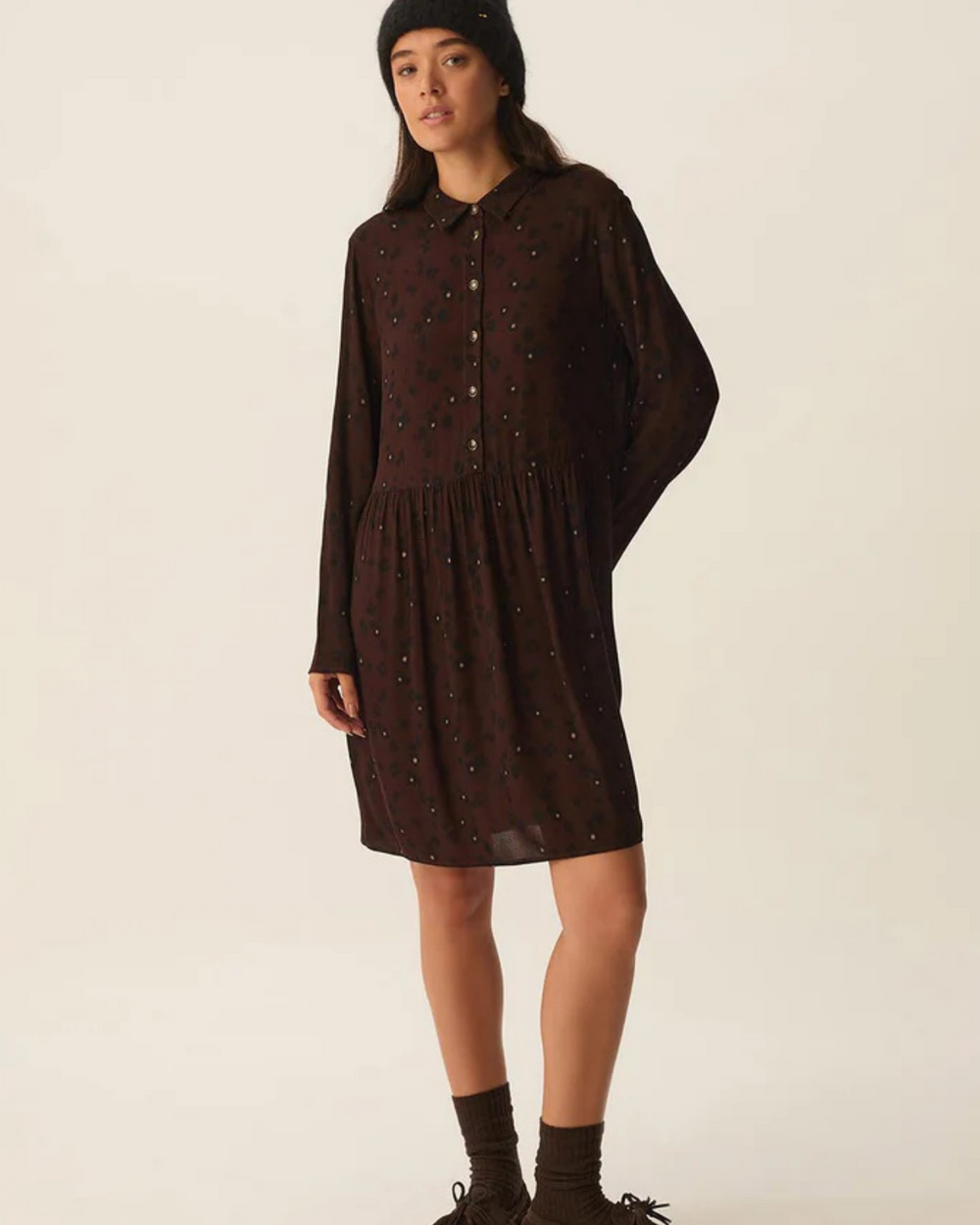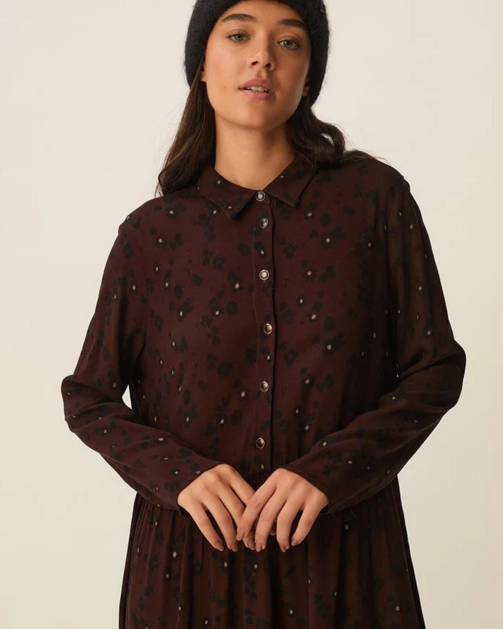 Robe marron foncé à imprimé guépard avec bouton 1/4