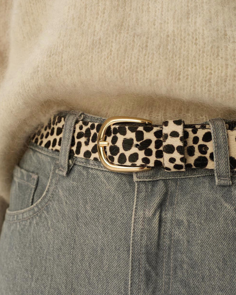 Ceinture en cuir avec imprimé dalmatien en poils de poney.