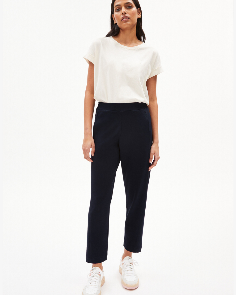 Pantalon coupe droite avec taille élastique au dos