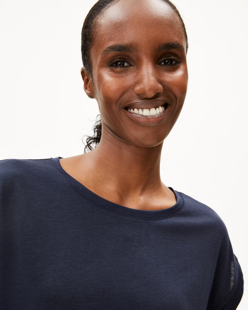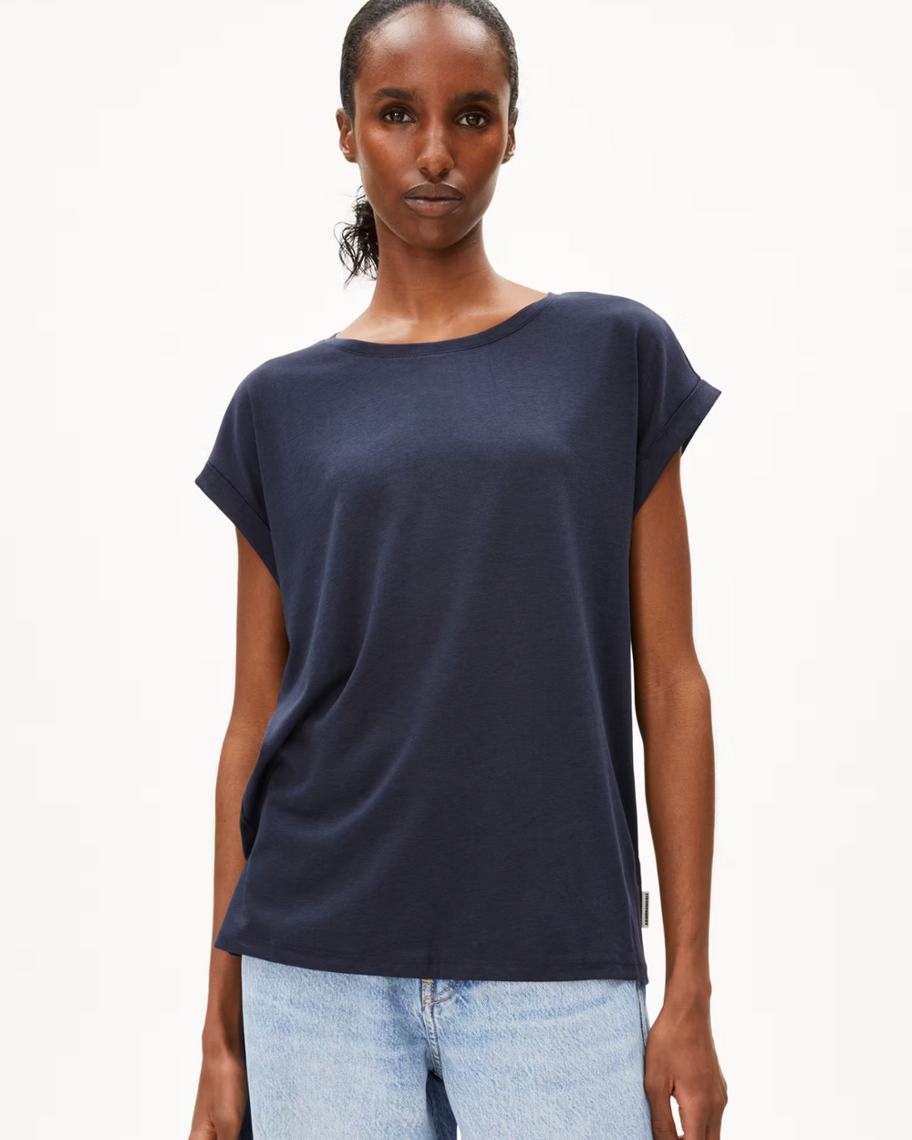 T-shirt avec encolure dégagée et manches légèrement roulées