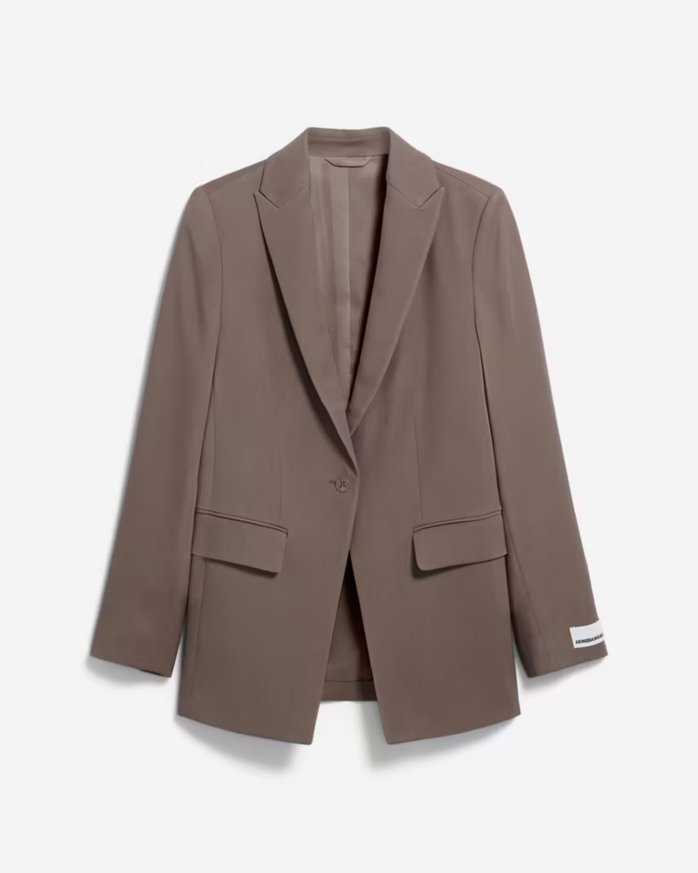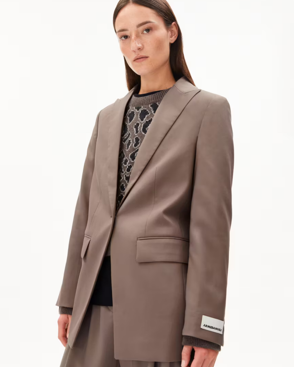Le blazer MIKULAA offre une coupe ample et confortable avec un col à revers et des poches passepoilées. Confectionné en viscose LENZING™ ECOVERO™ et avec une touche de stretch, il allie matière de qualité et style décontracté et urbain.