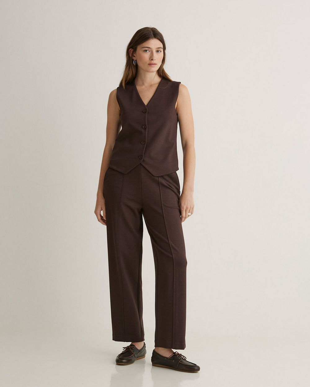 Pantalon taille élastique forme ballon à pinces avec coutures avant et arrière