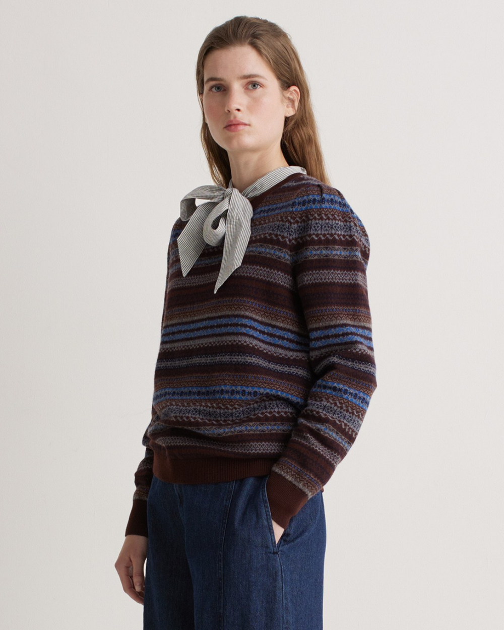 Pull à col ras-du-cou en tissu équitable avec bouffant subtil sur l'épaule