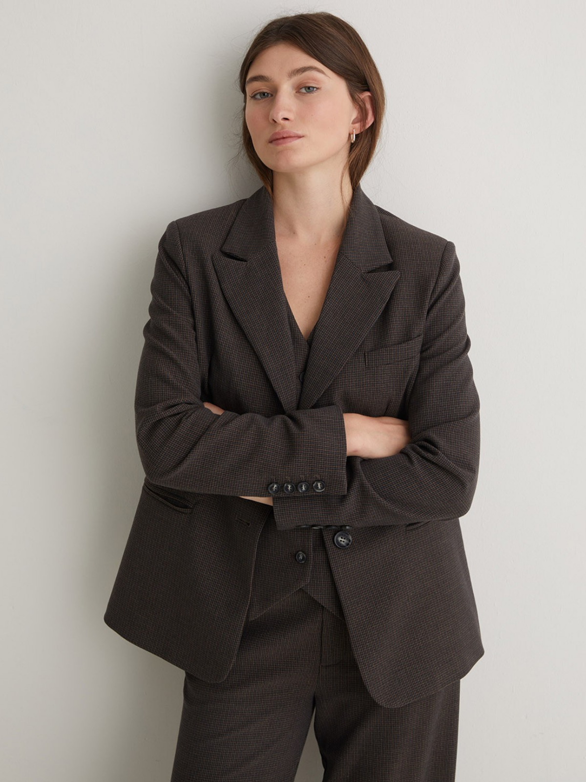 Blazer à simple boutonnage avec motif à carreaux subtil
