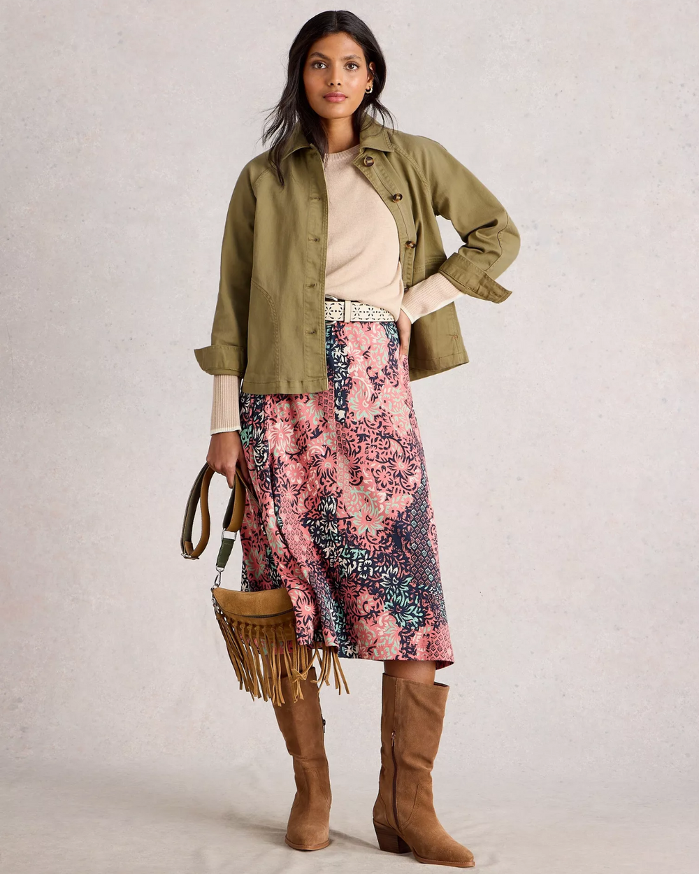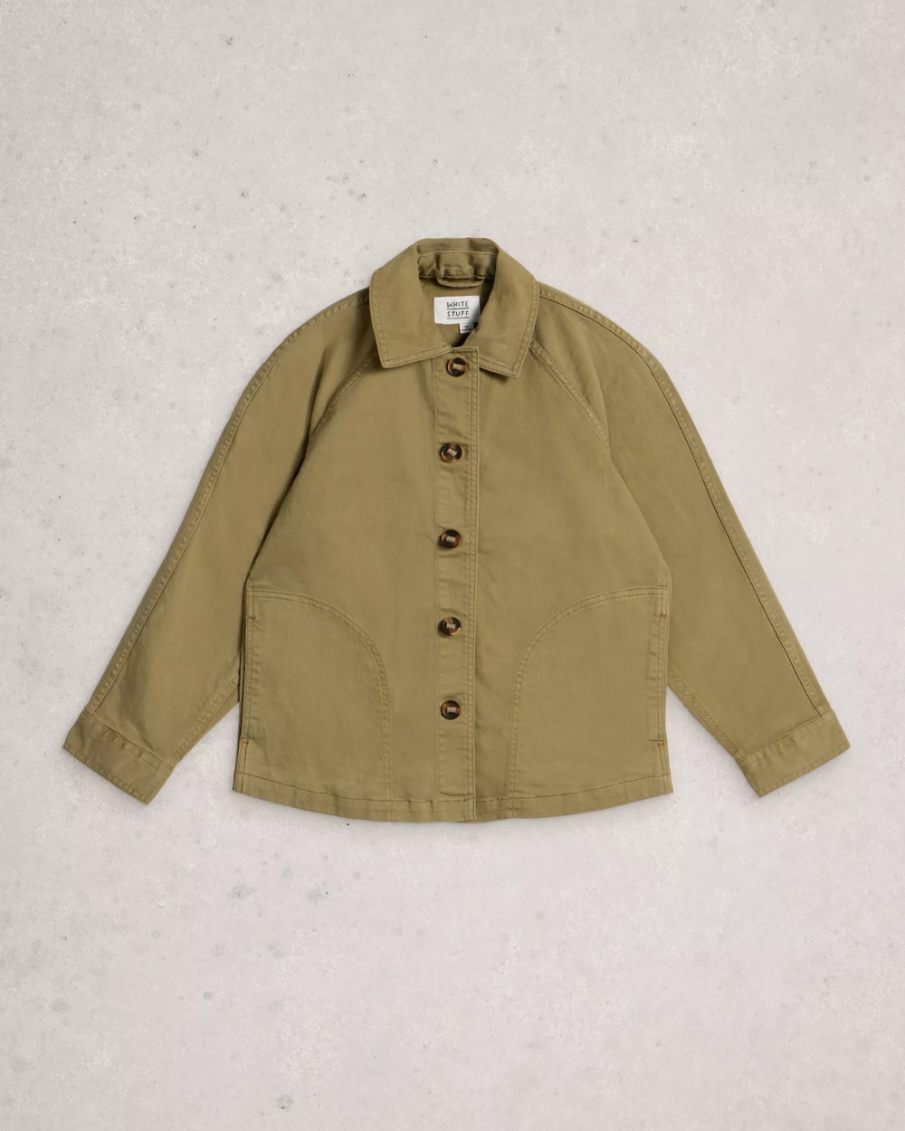 Une veste en denim versatile. Elle est légèrement ample et possède des manches raglan.