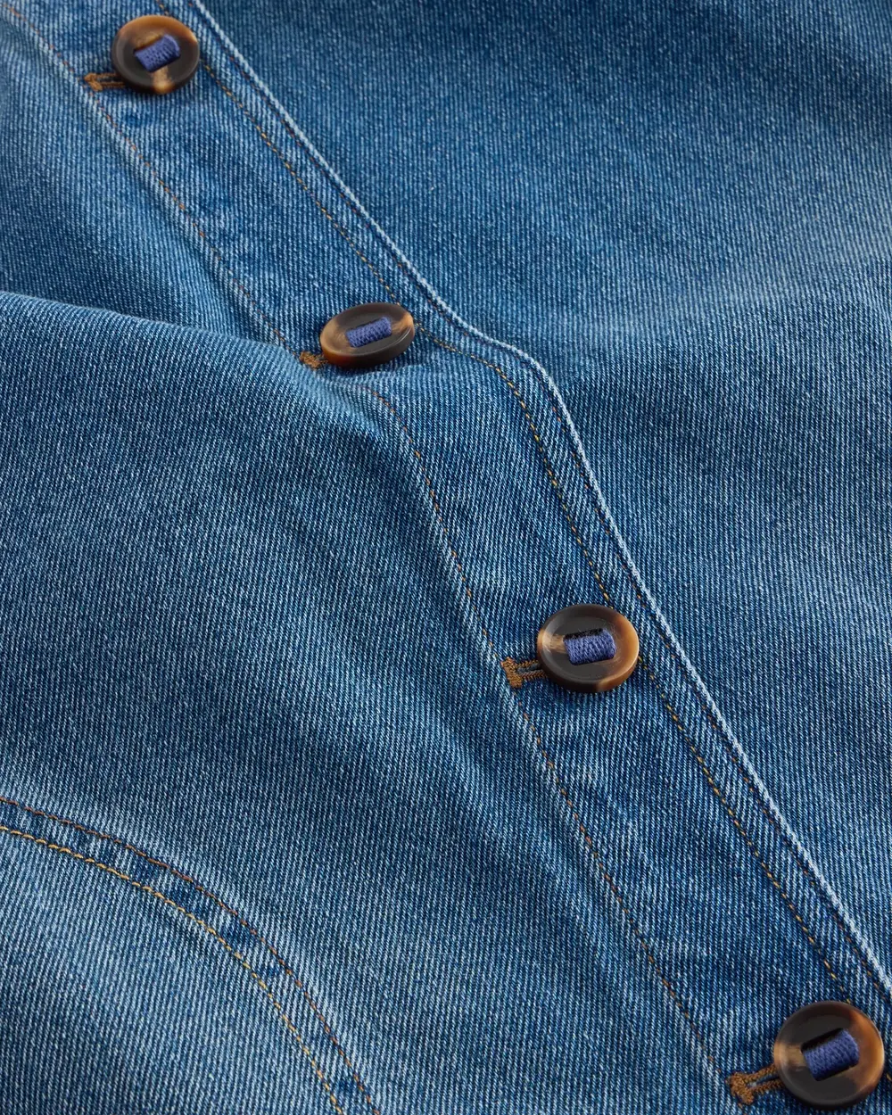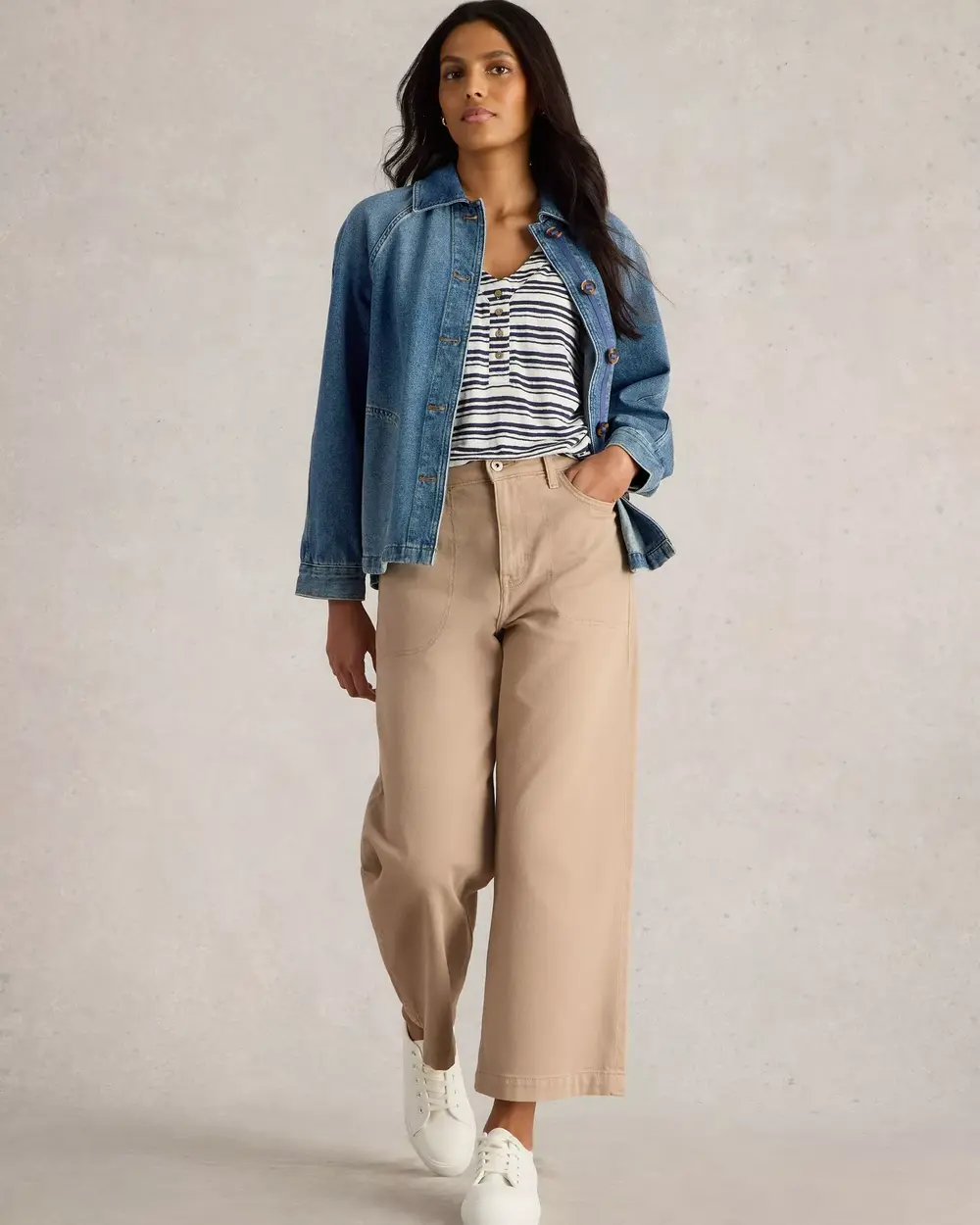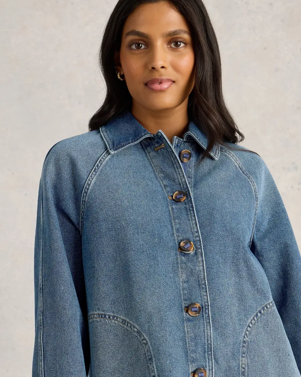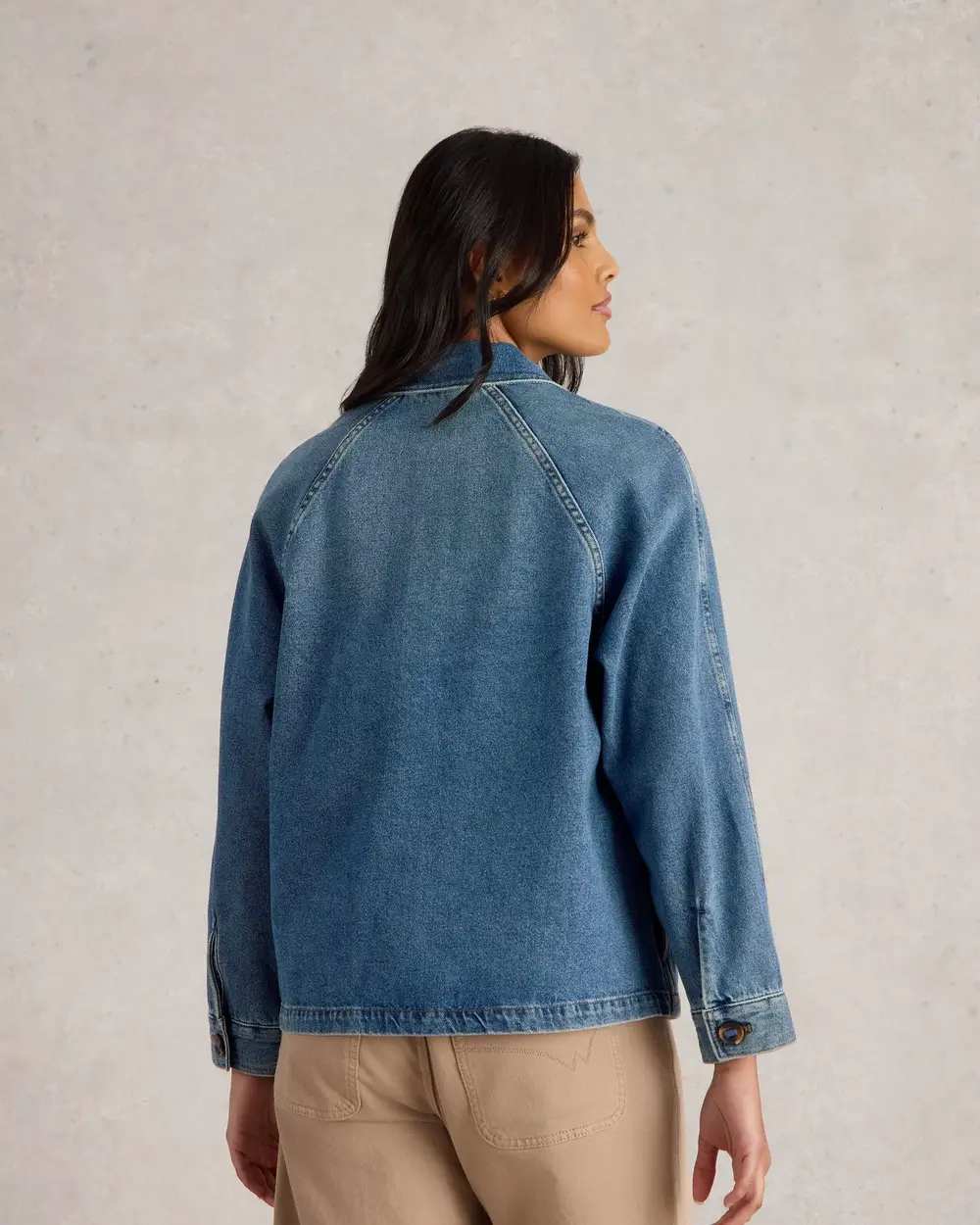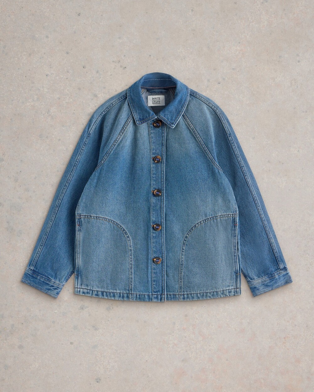 La veste en jean qu'on porte partout. Légèrement oversize avec manches raglan. Optez pour un look classique et décontracté avec un pantalon chino, ou doublez le jean!