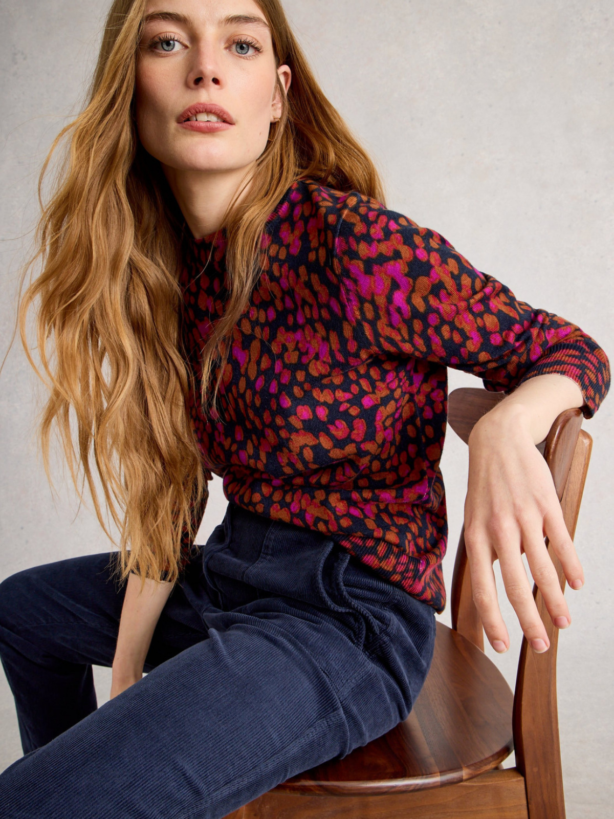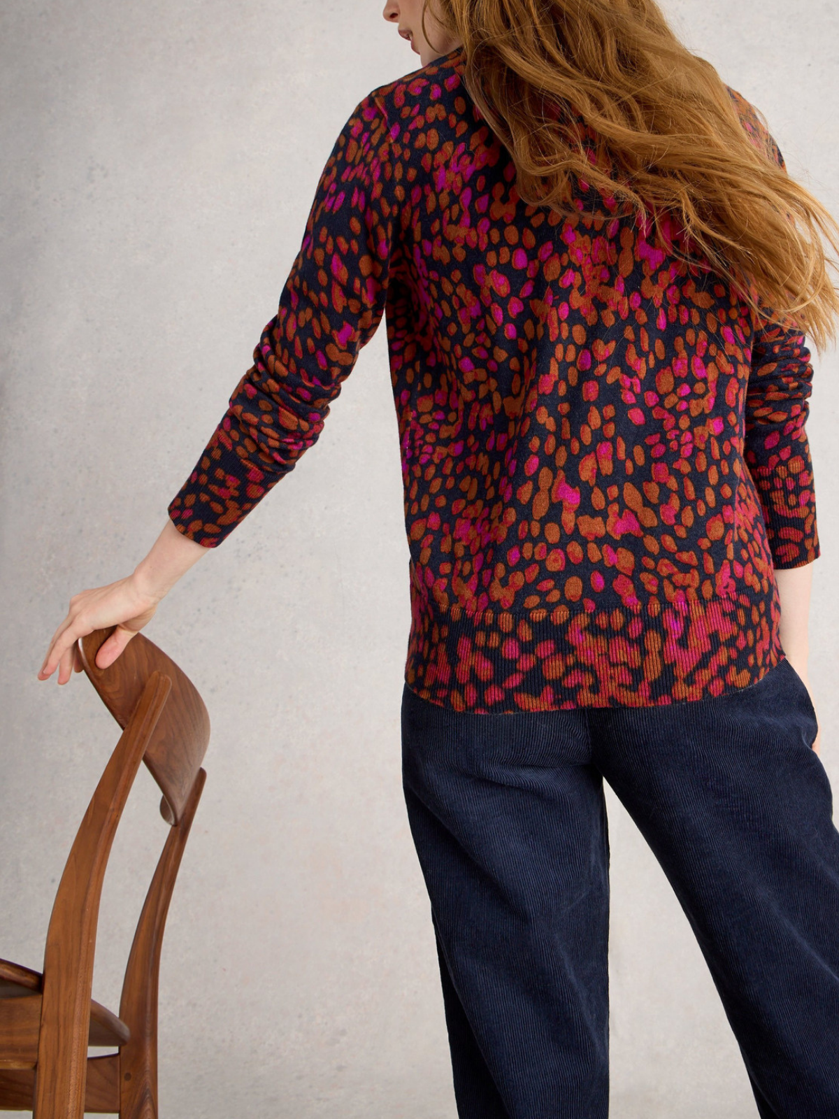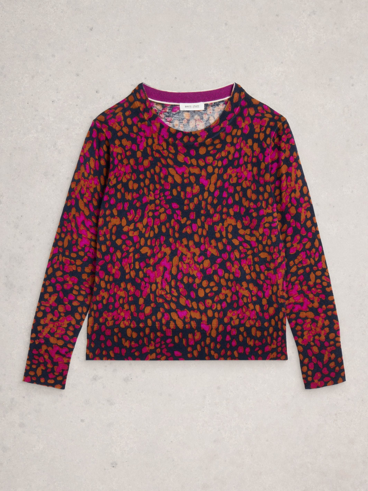 Pull imprimé aux jolies couleurs. Coupe ajustée.