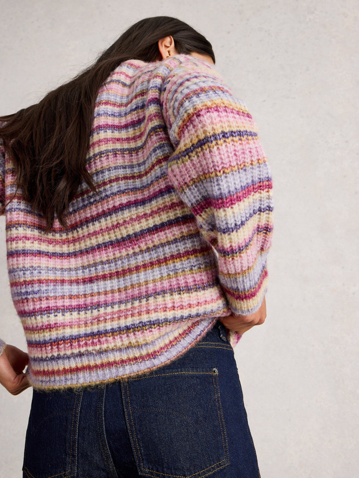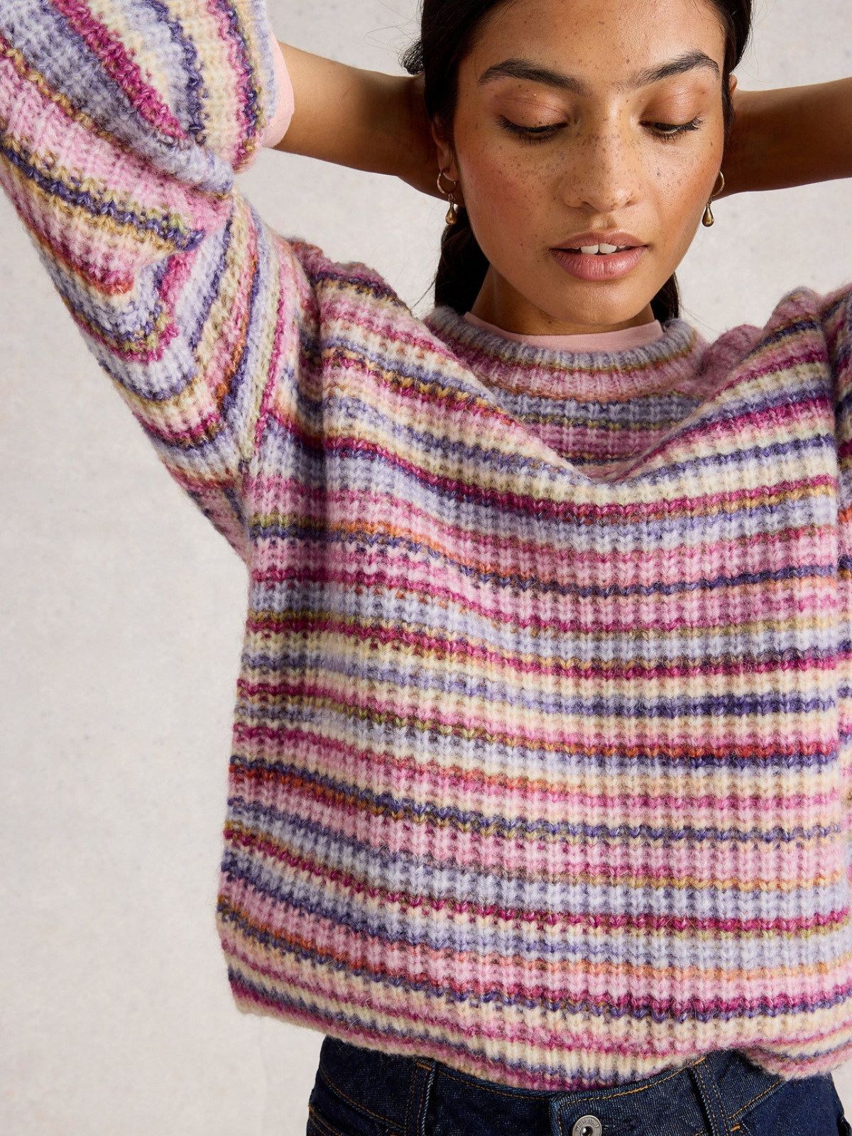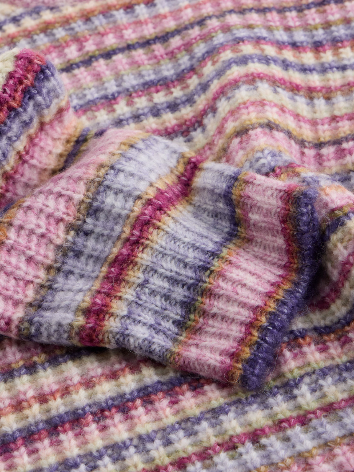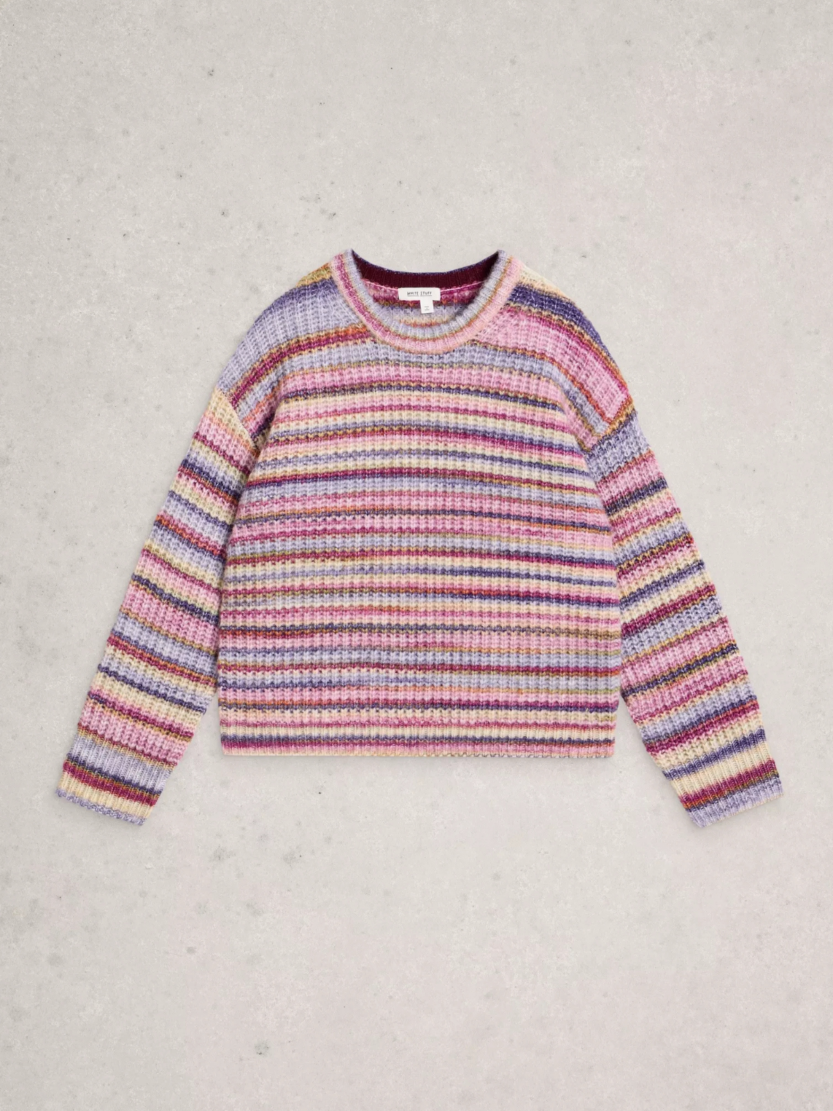 Pull aux couleurs d'automne avec encolure ronde et manches longues.