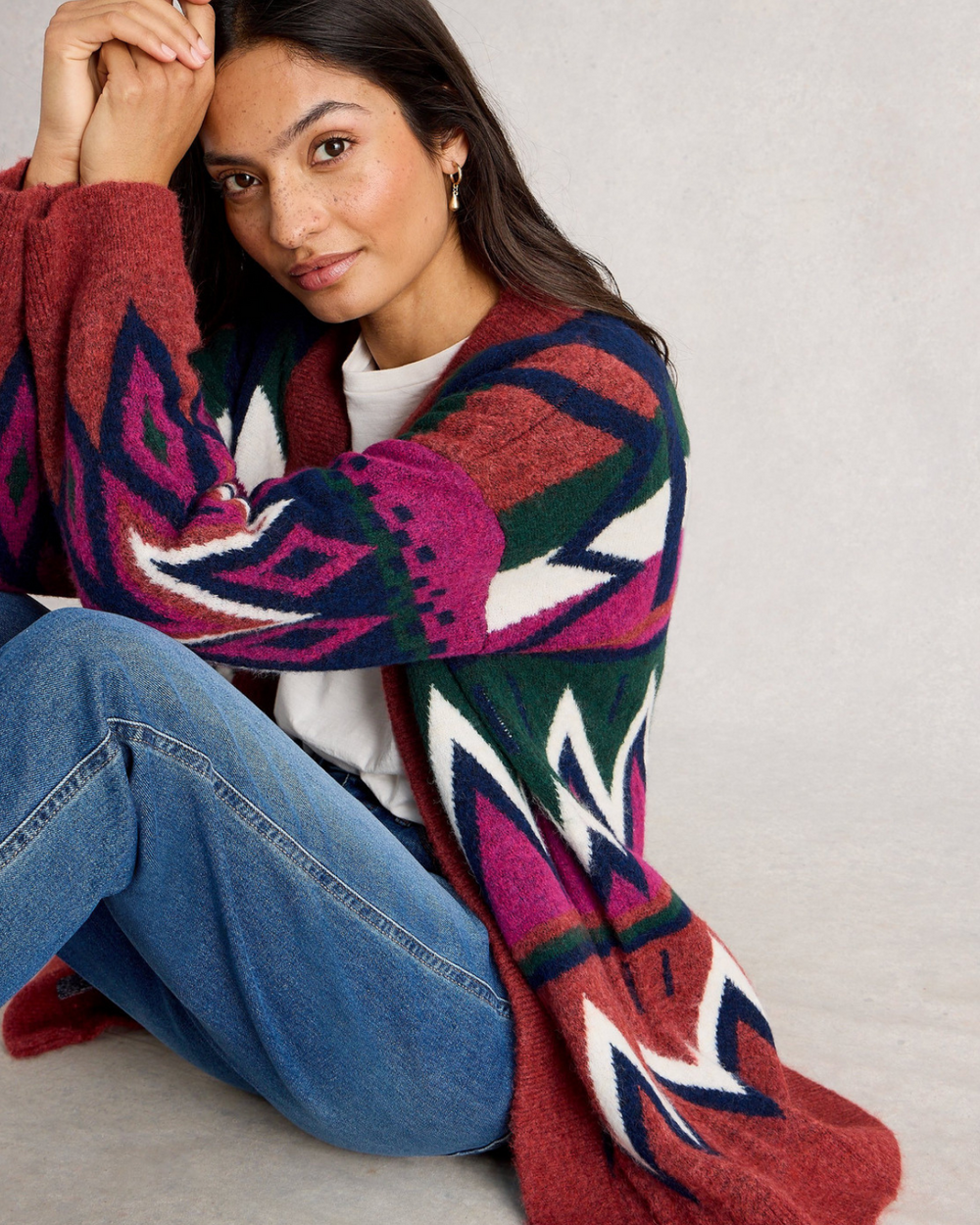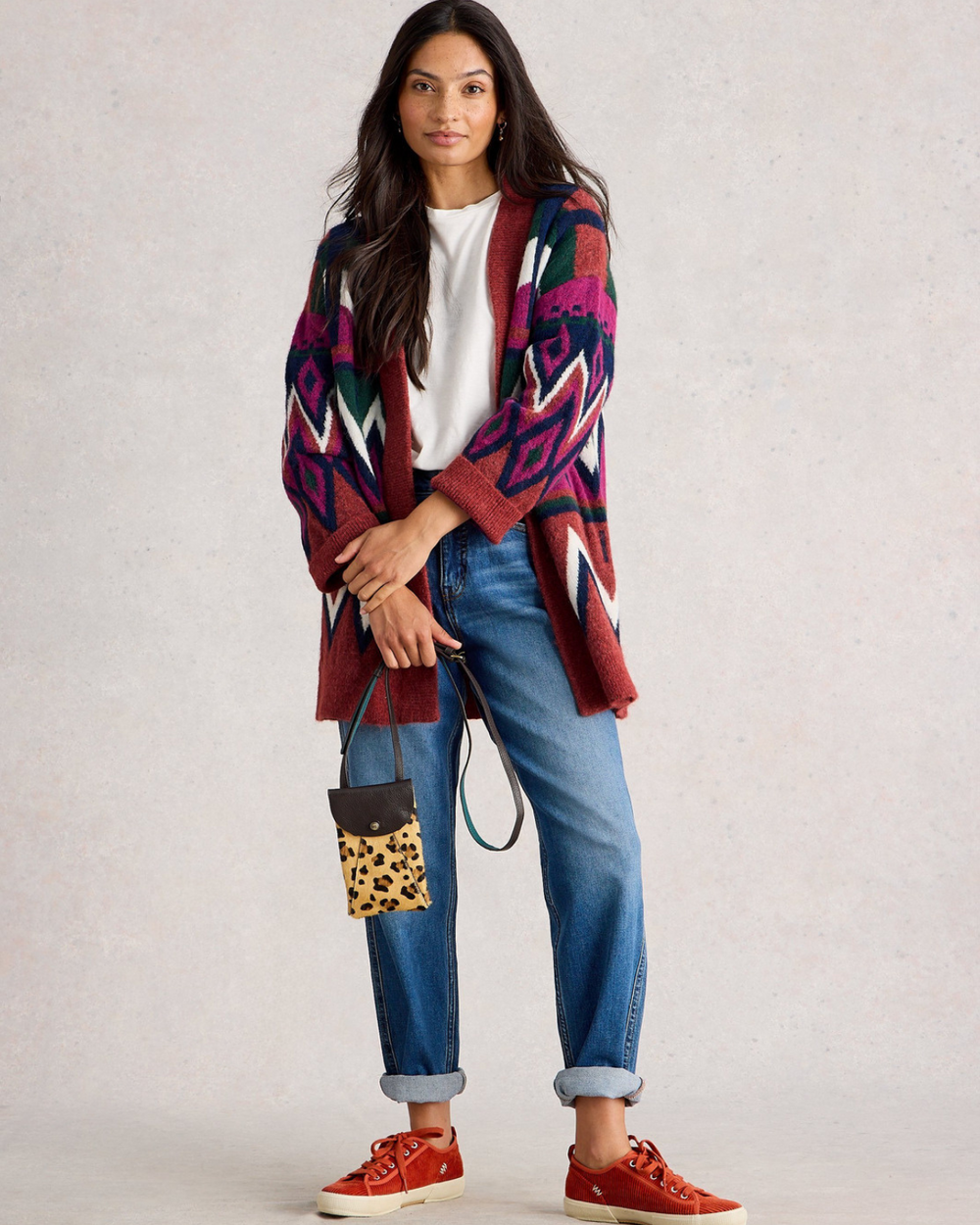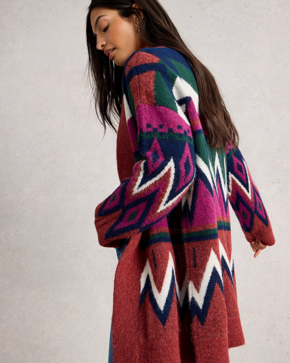 Cardigan décontracté avec un imprimé abstrait.