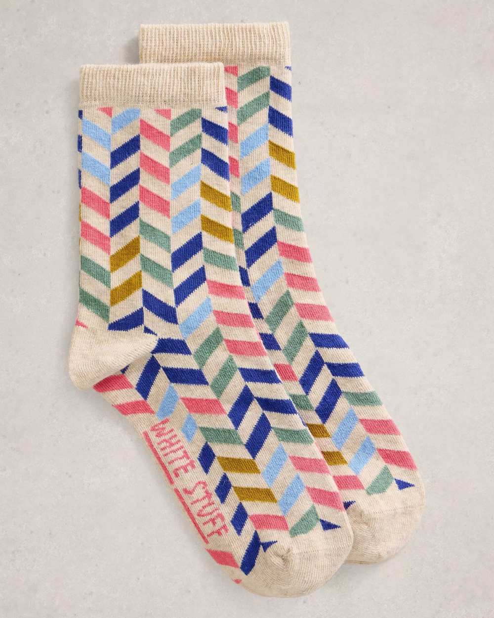 Une paire de chaussettes à la cheville avec imprimé chevron.
