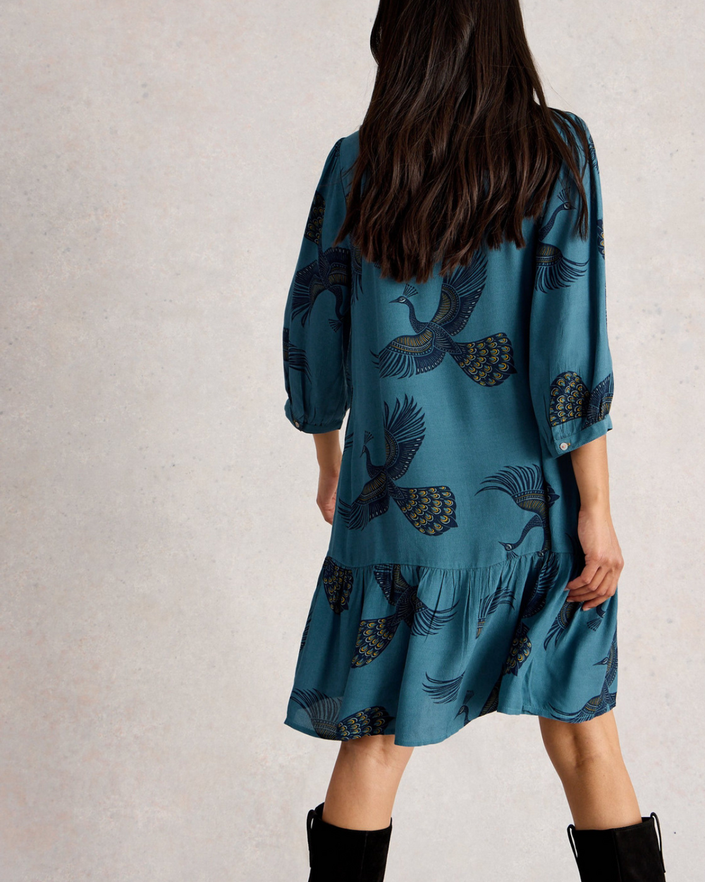 Robe midi en viscose imprimée à col en V avec volant à l'ourlet