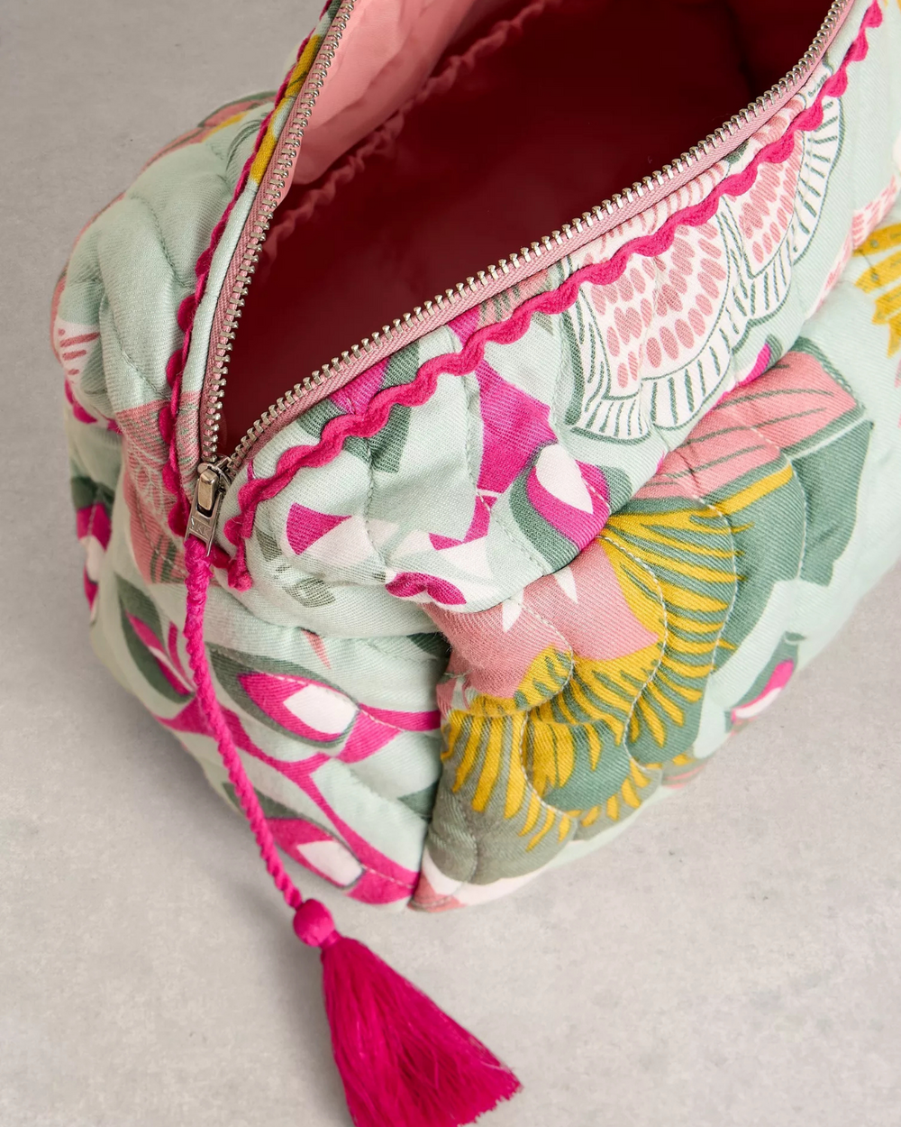 Trousse de toilette matelassée avec poches intérieures et fermeture à glissière.