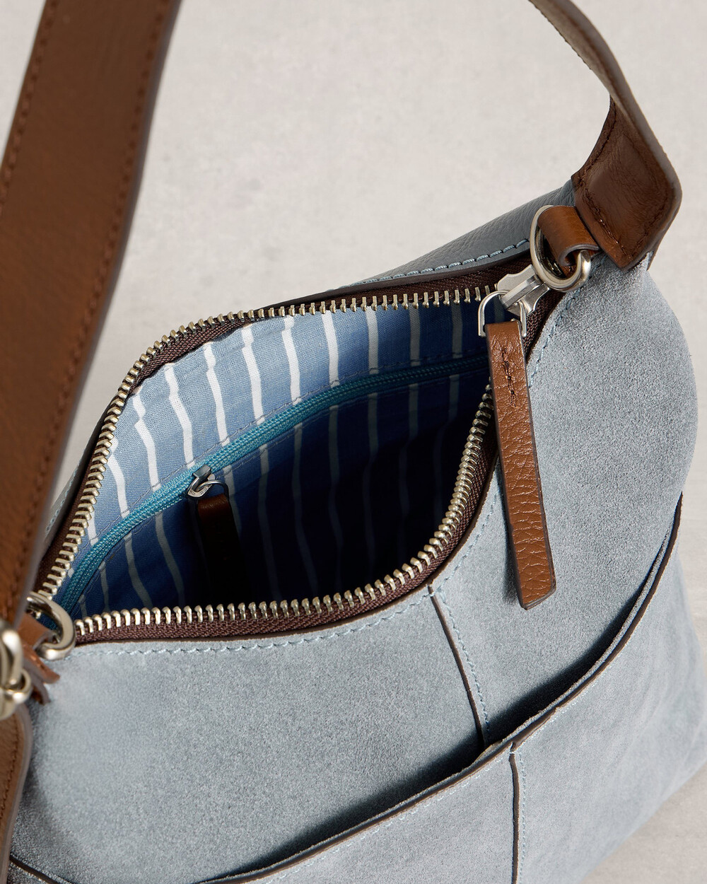 Sac à main en cuir avec bandoulière amovible.