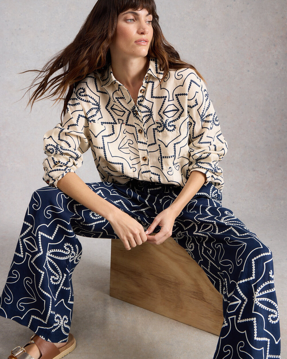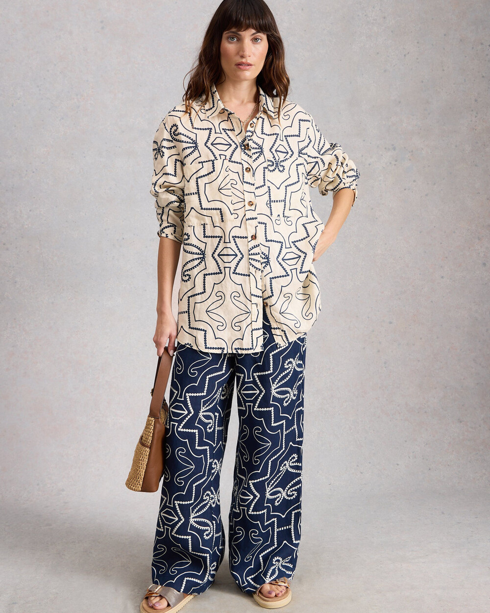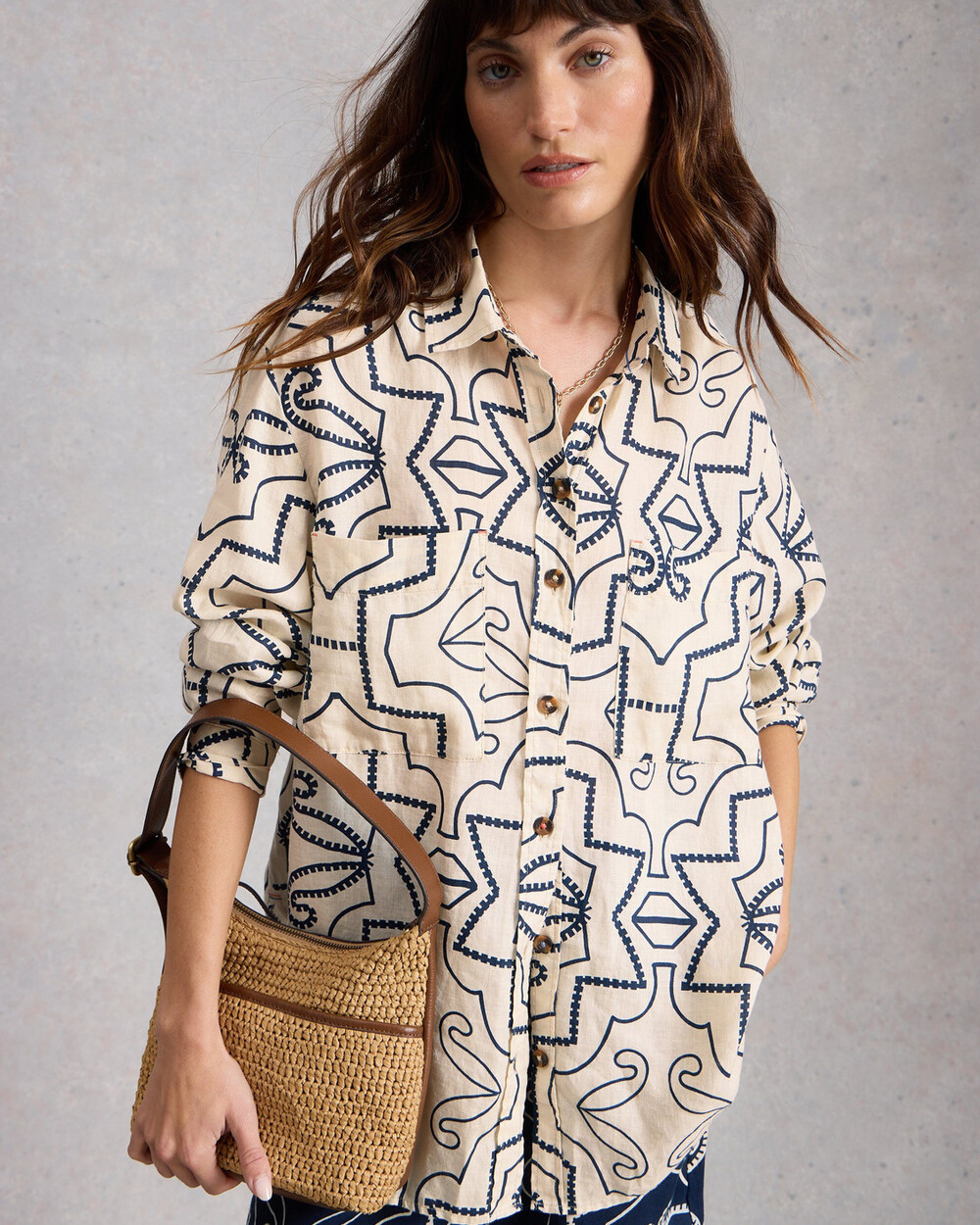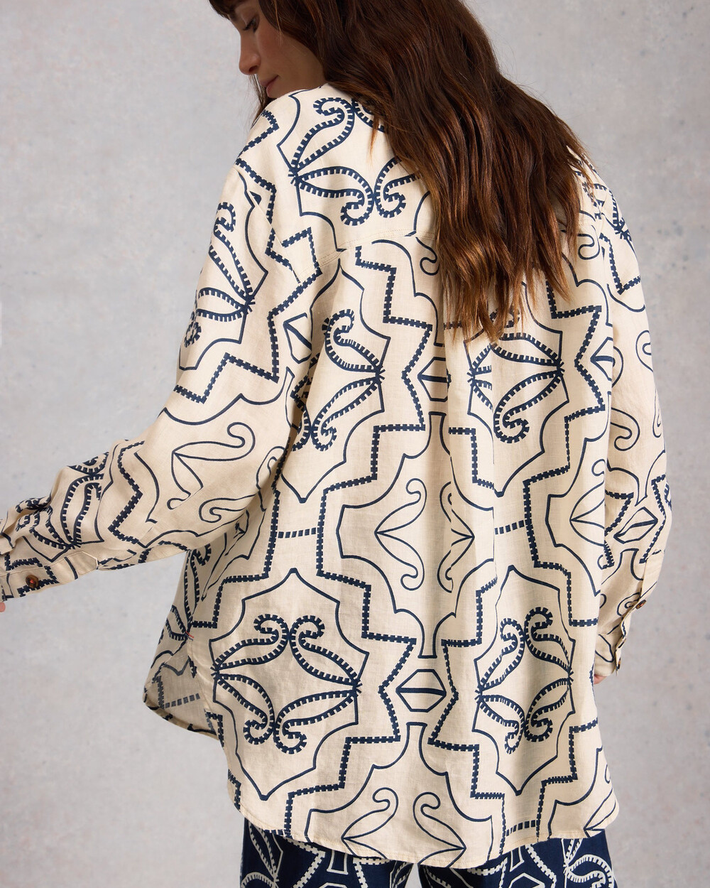 Chemise lousse en lin mélangé. Imprimé exclusif White Stuff.
