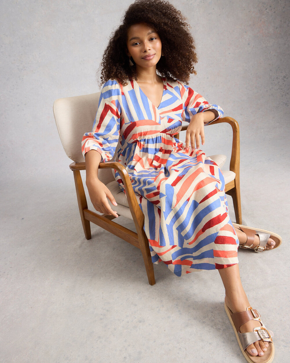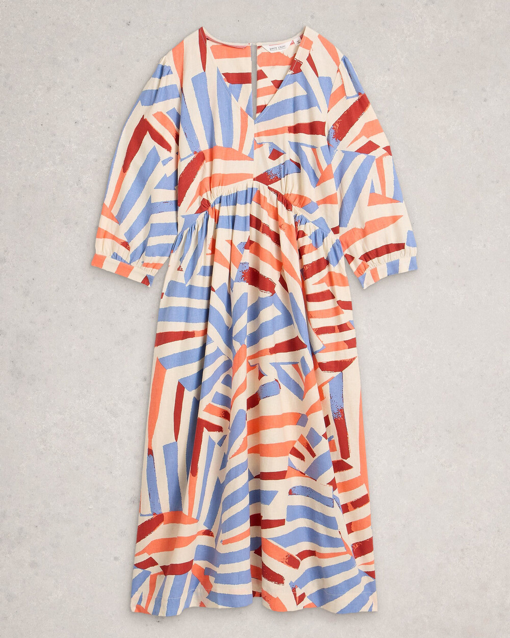 Robe longueur midi en lin mélangé, imprimé et à manches 3/4. Imprimé exclusif White Stuff.