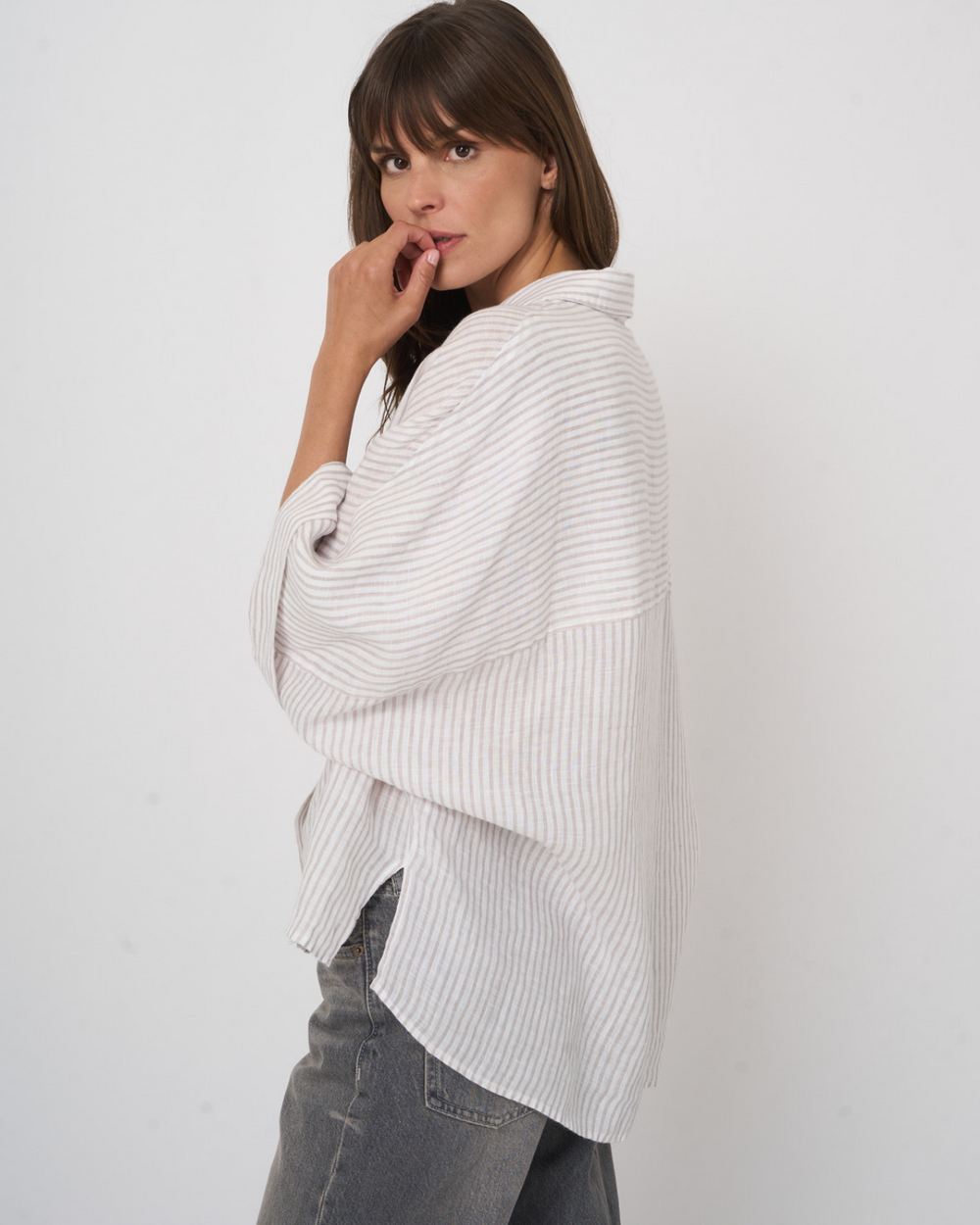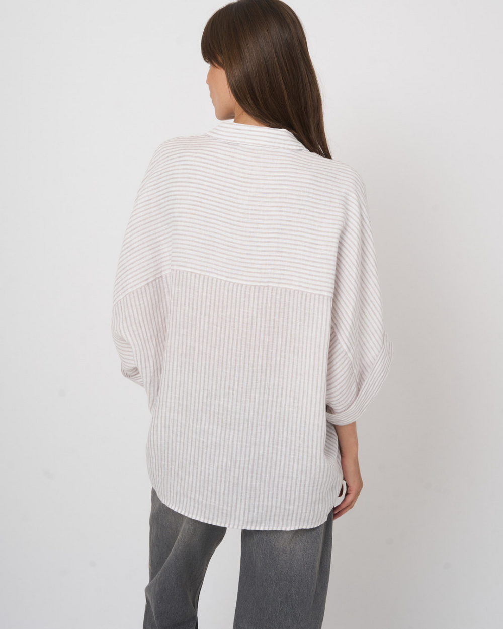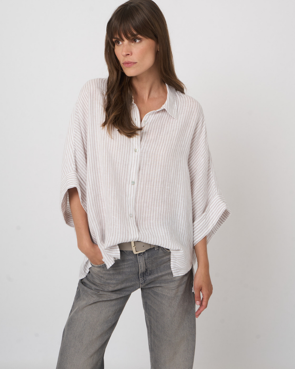 Chemise à manches 3/4, épaules tombantes et boutons sur le devant