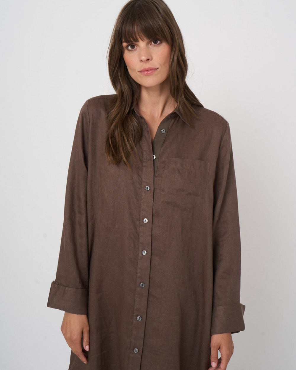 Robe chemise à manches longues boutonnée sur le devant