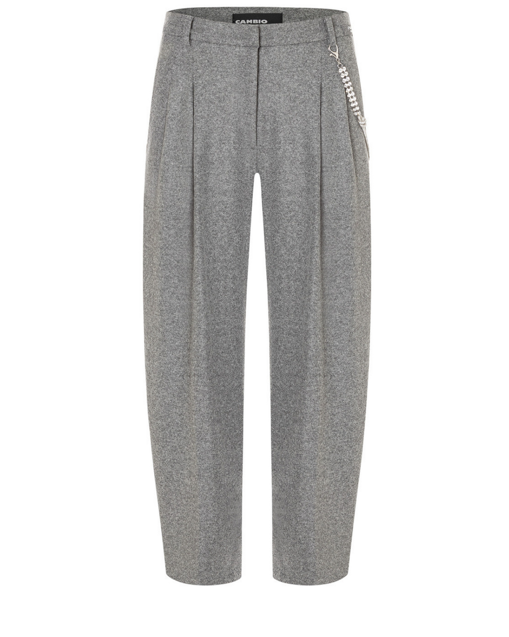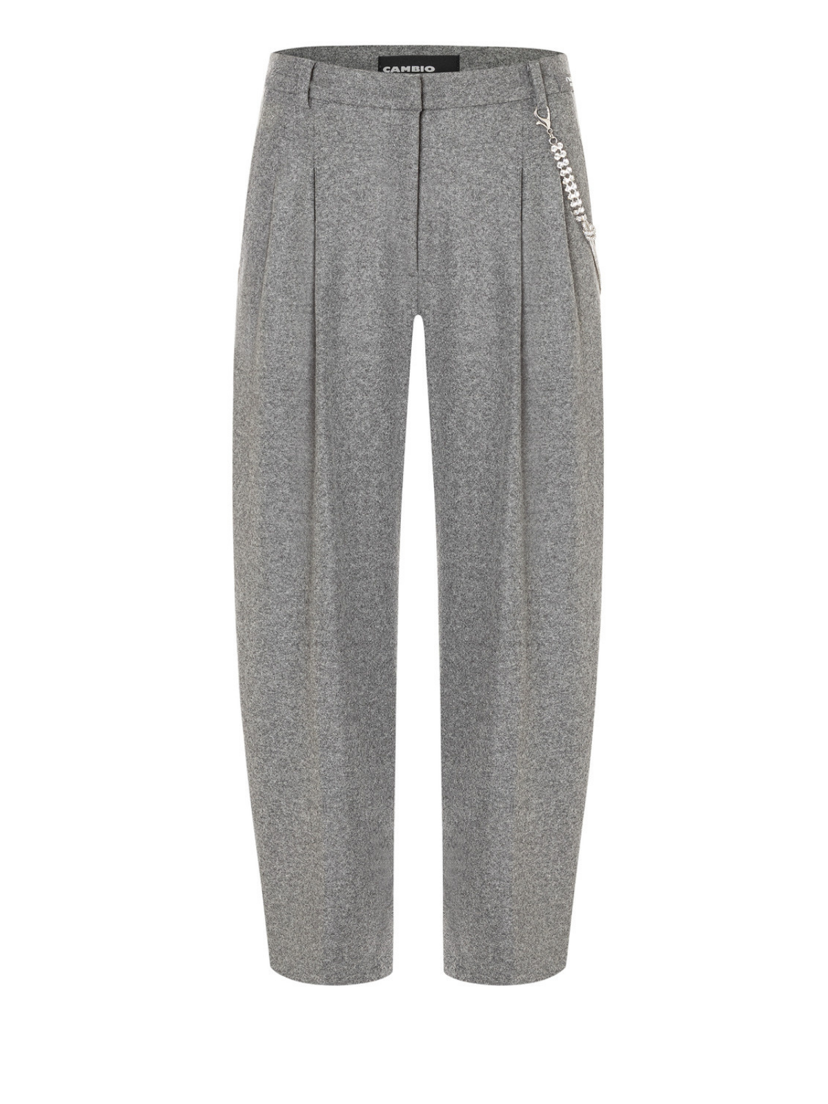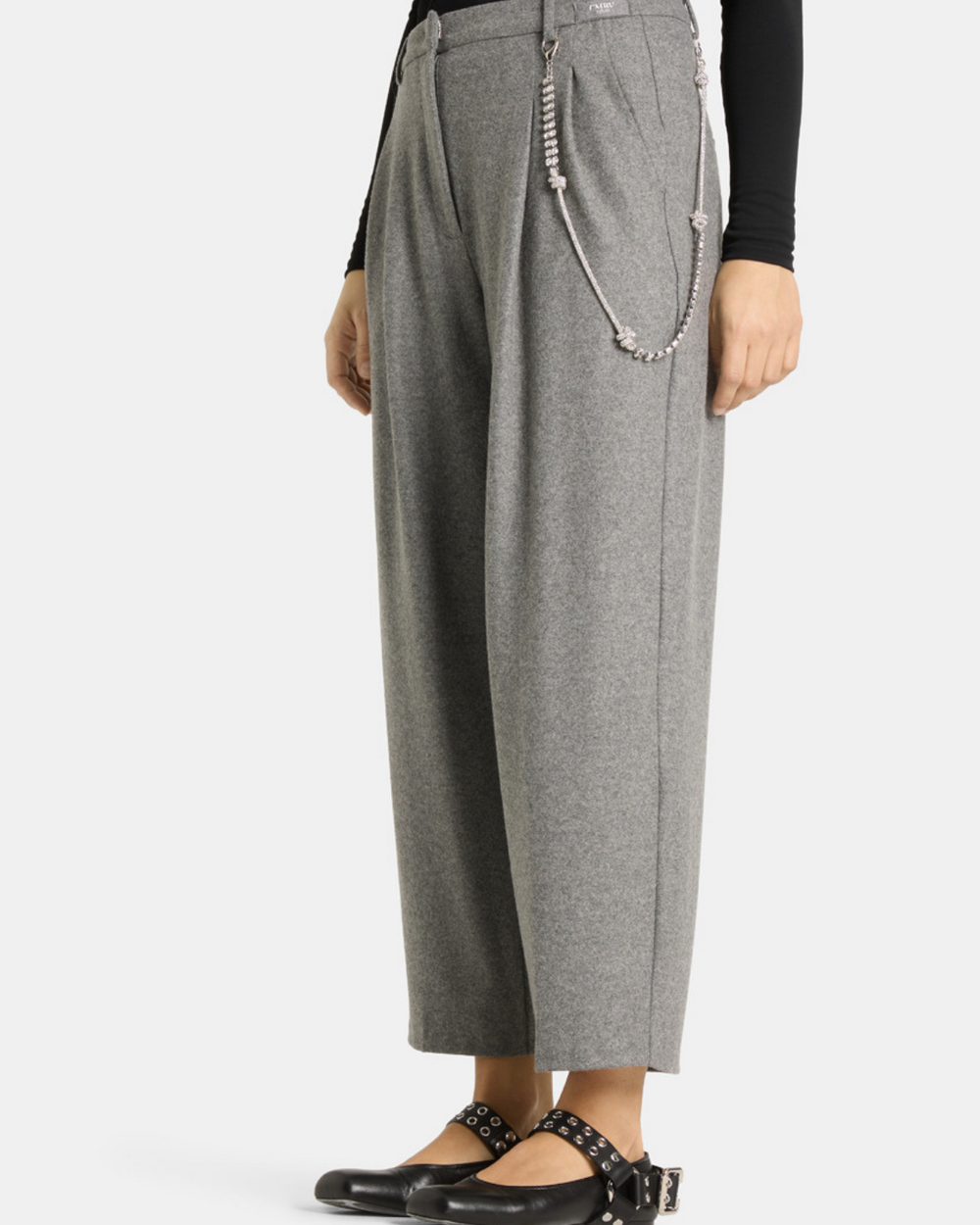 Pantalon léger en flanelle avec plis doubles et grande chaîne amovible en cristal Swarovski