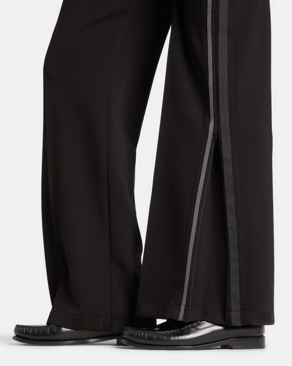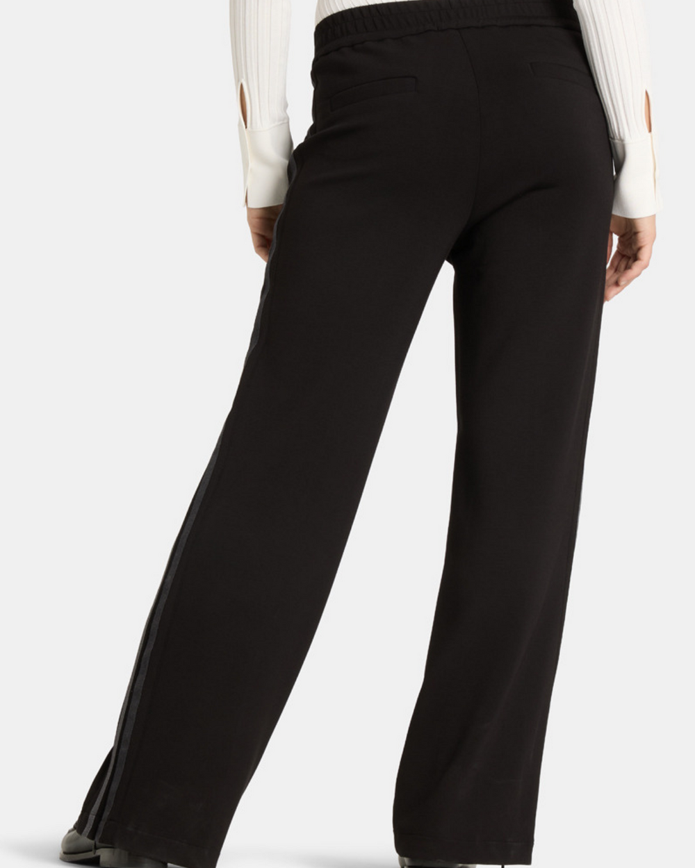 Pantalon en jersey ave bande rayée sur les côtés, longue fermeture éclair et coutures à l'avant des jambes