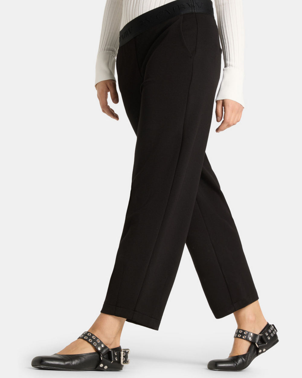 Pantalon cheville en jersey, à enfiler, avec poches en biais et ceinture à logo