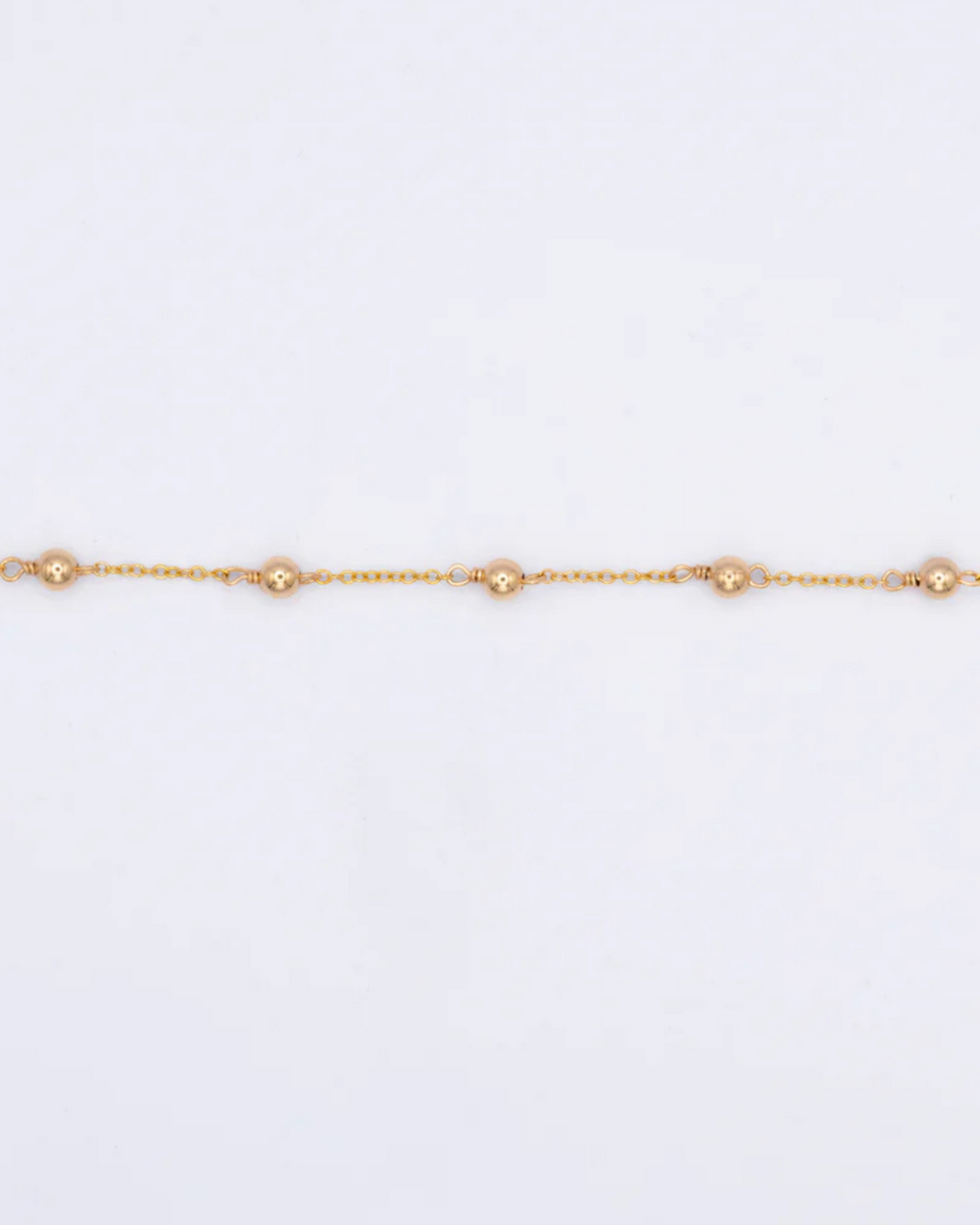 Bracelet 6" en gold-filled avec 6 billes de 4mm en gold-filled. Rallonge de 1.5".