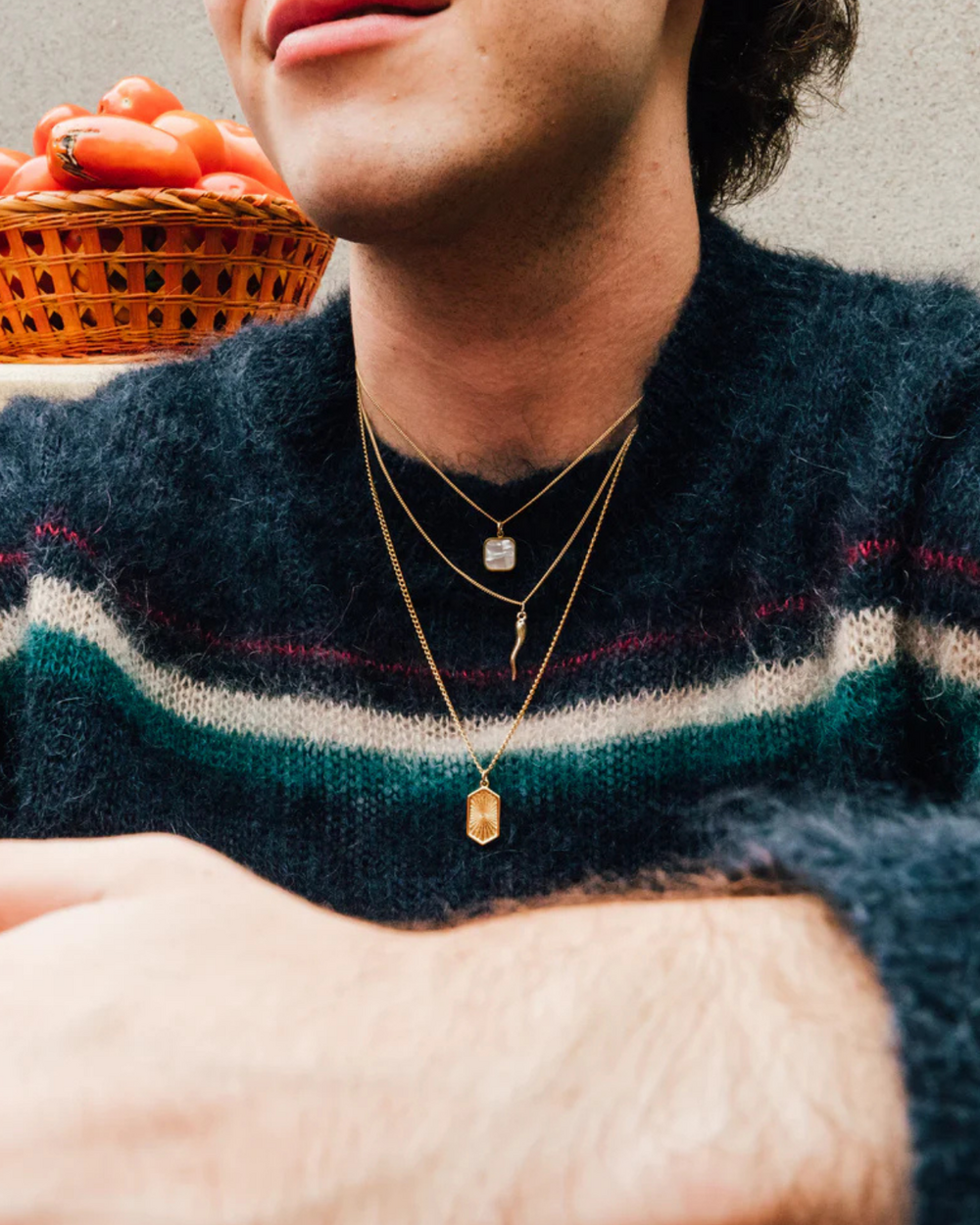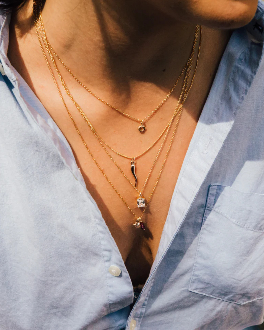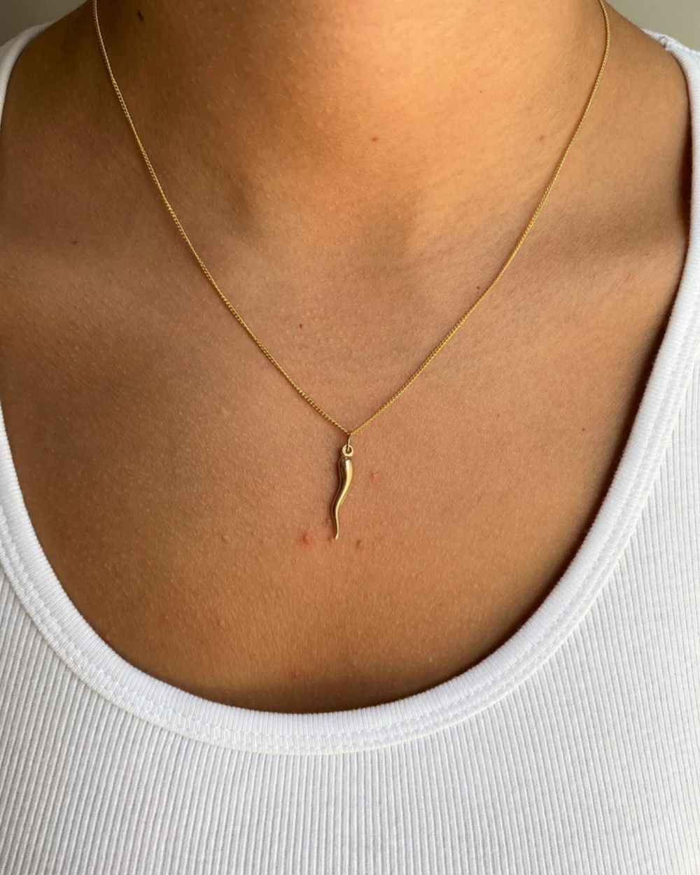 Collier 18" chaîne gourmette en gold-filled avec corne italienne 23mm.