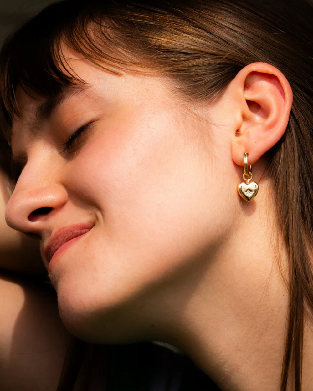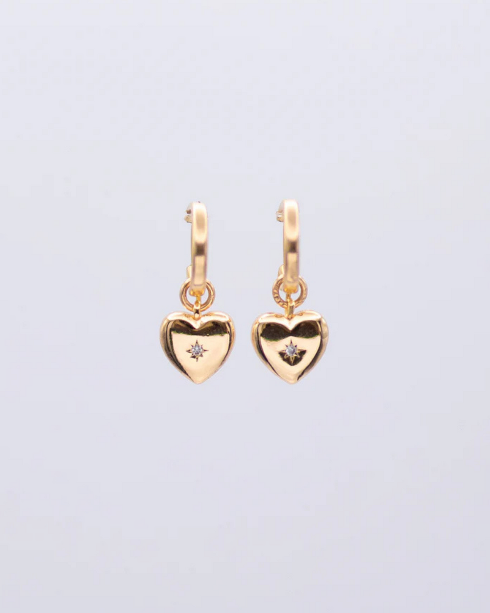 FermerAnneaux 13mm en or rempli, détail coeur bombée avec zircon. Longueur totale de la boucle: 25mm