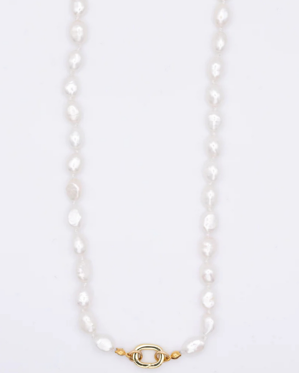 Collier 17" avec perles d'eau douces ovales 7mm et fermoir à ressort avant.