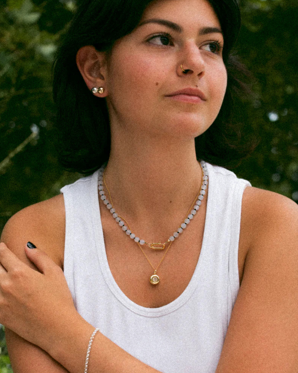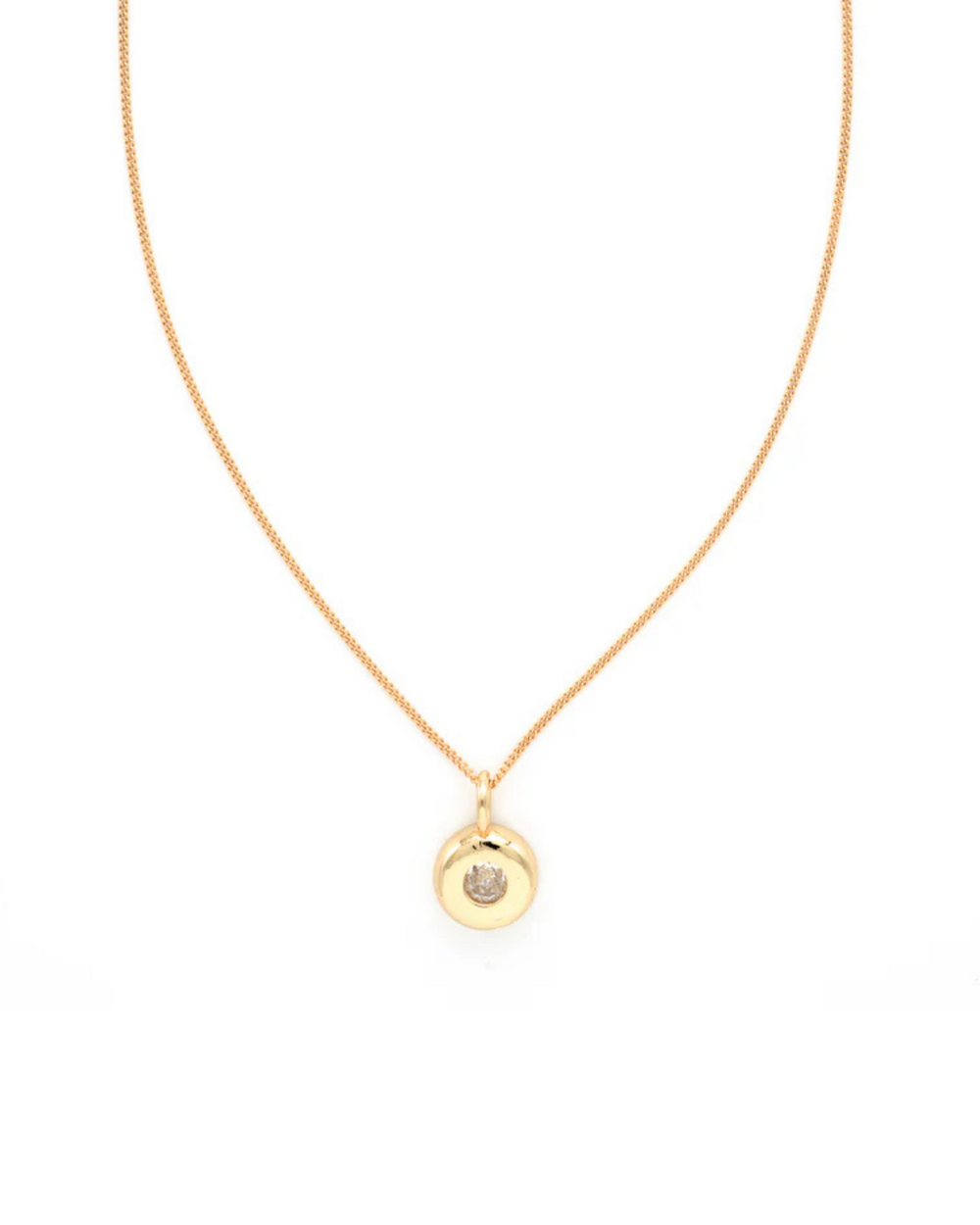 Collier 18" en or rempli, chaîne gourmette, pendentif rond bombé 12mm avec zircon . Avec rallonge de 2.5".