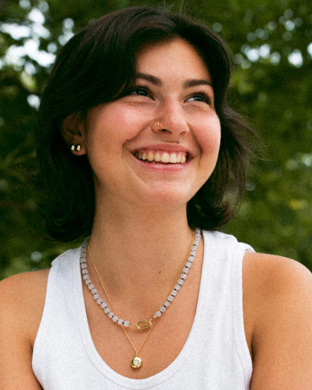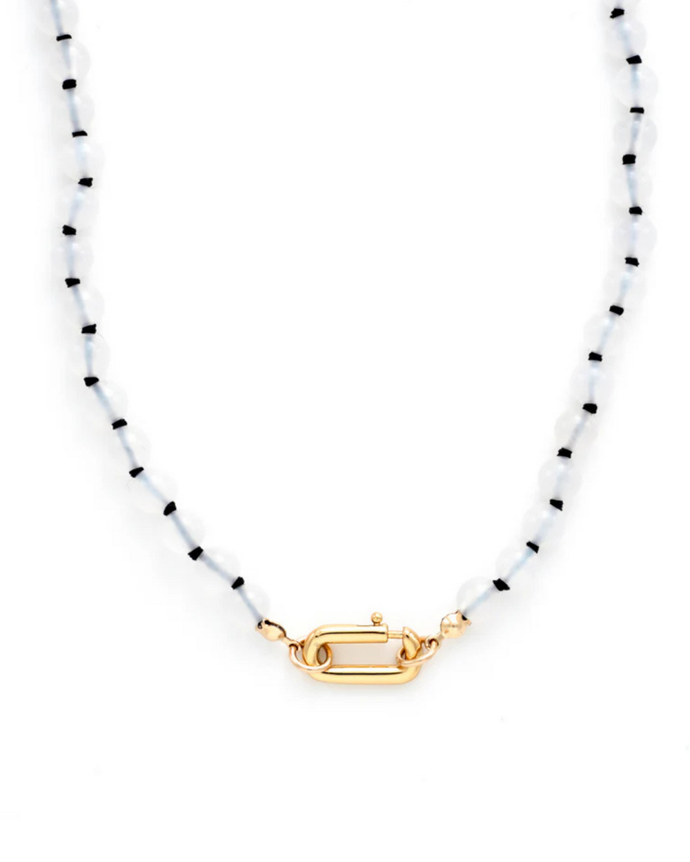 Collier 18" avec pierres d'agate blanches, attache avant rectangulaire.