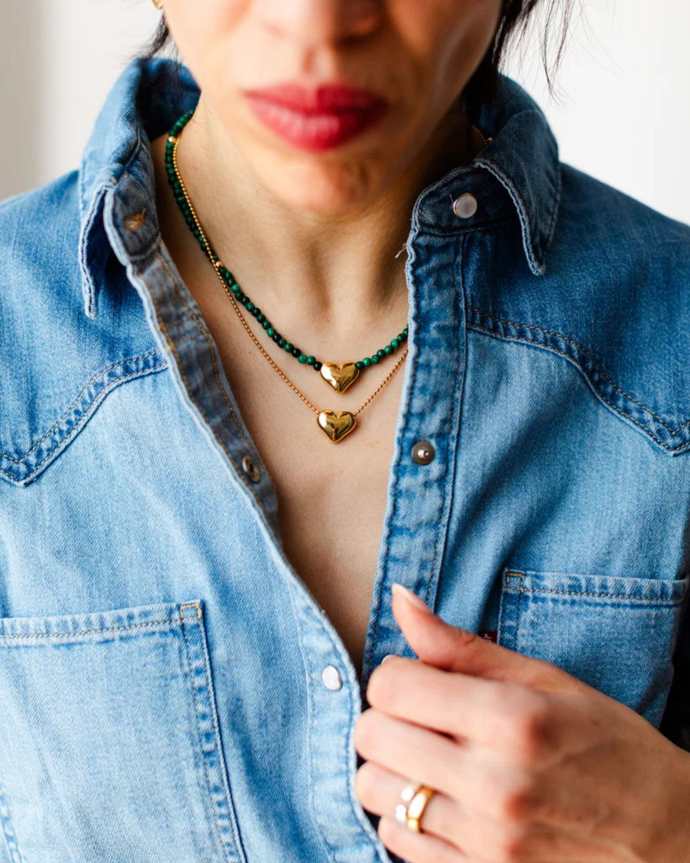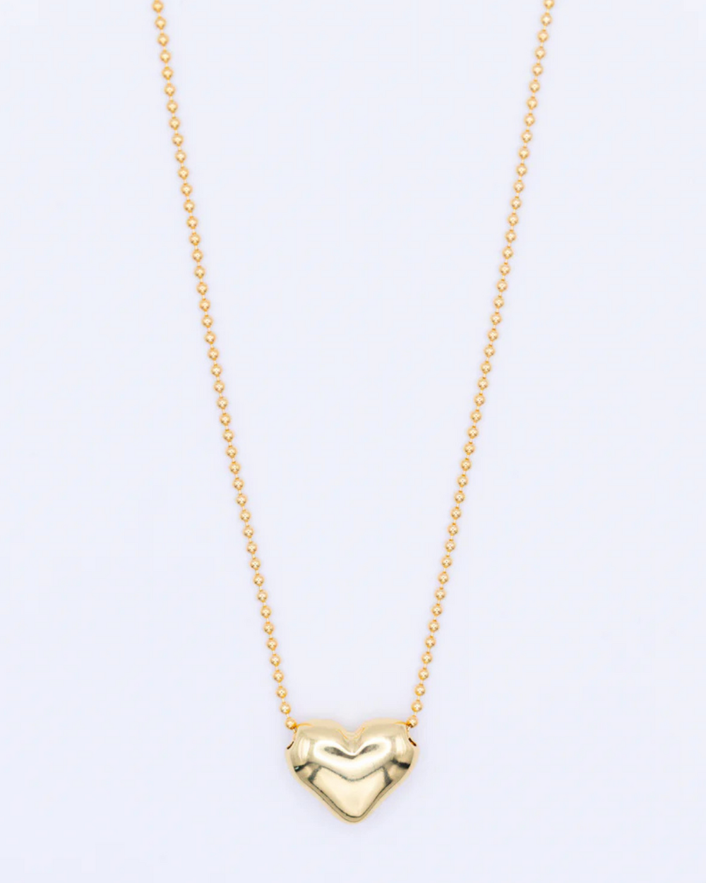 Collier 18" en or rempli, chaîne à billes 1mm et coeur bombé latéral. Rallonge de 2.5".
