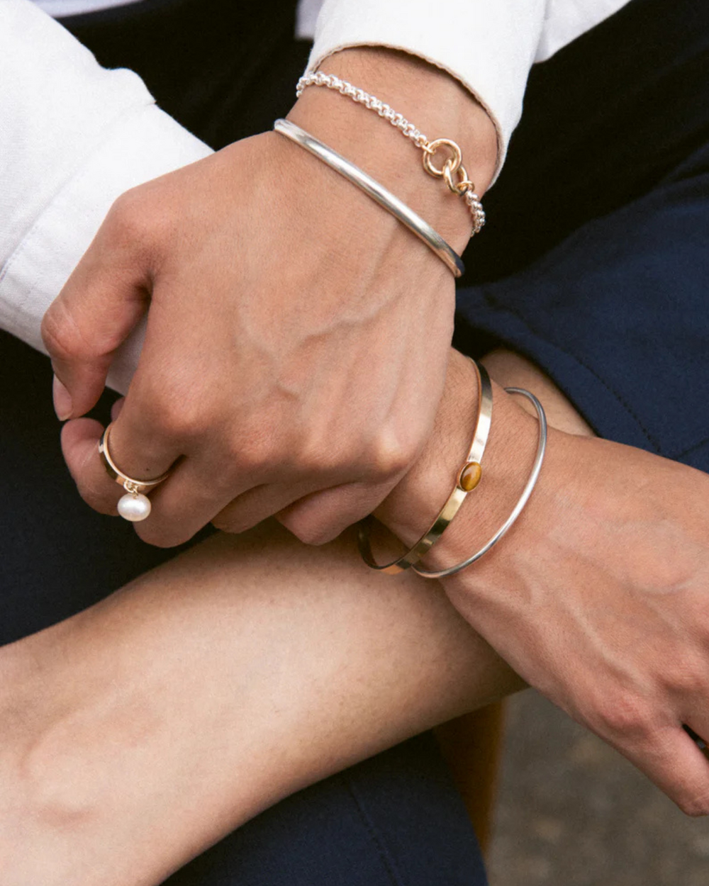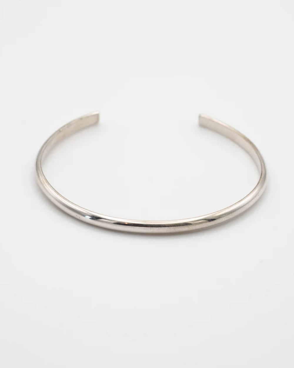 Bracelet manchette rigide fil demi-rond en argent sterling.