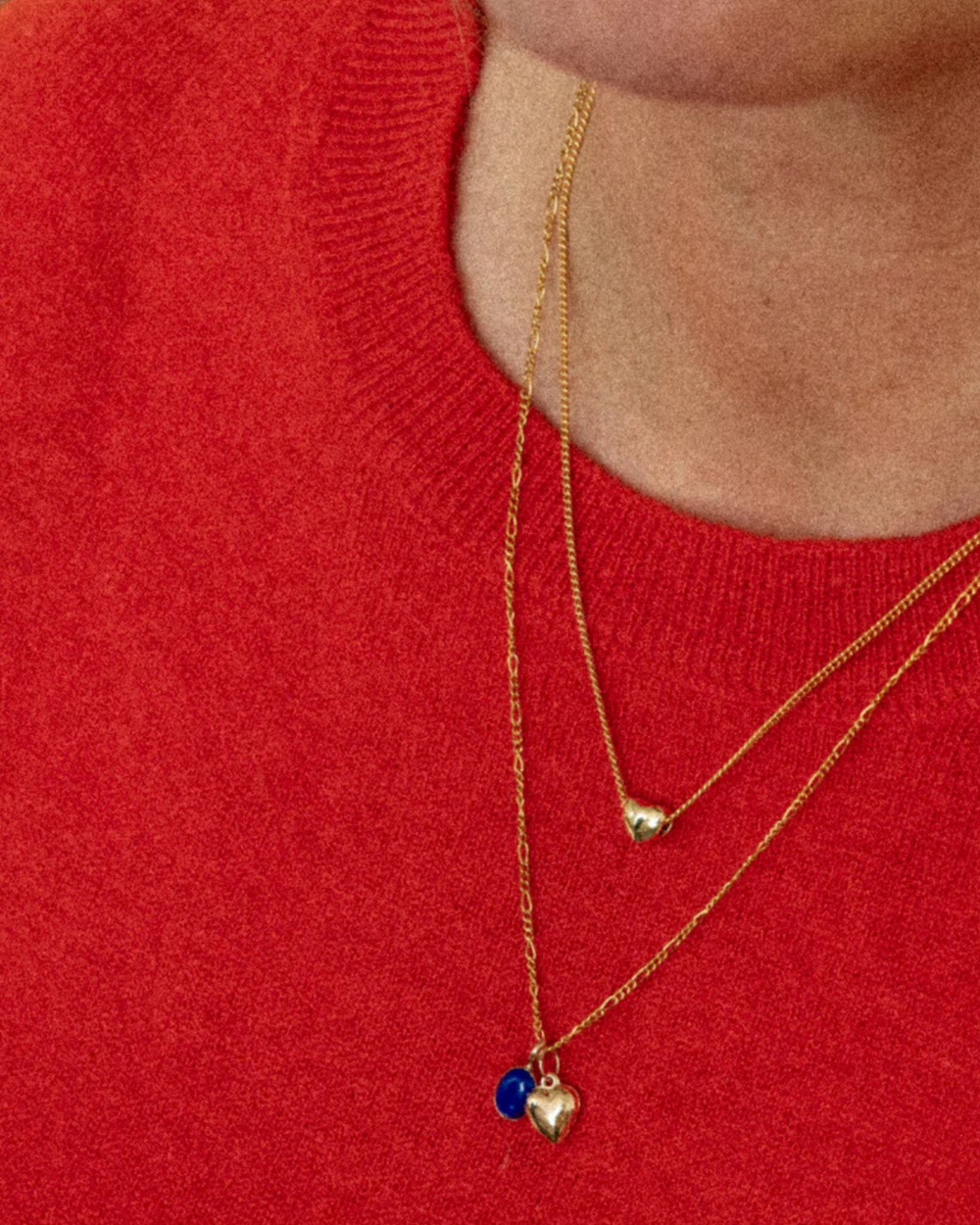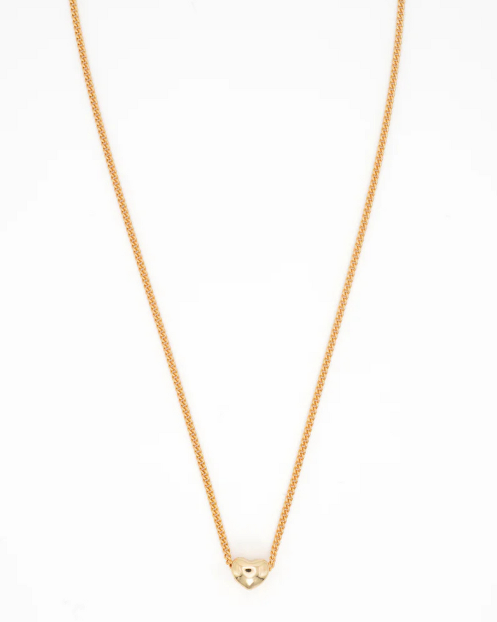 Collier 15" chaîne gourmette en or rempli avec petit coeur latéral plaqué or. Avec rallonge de 3".