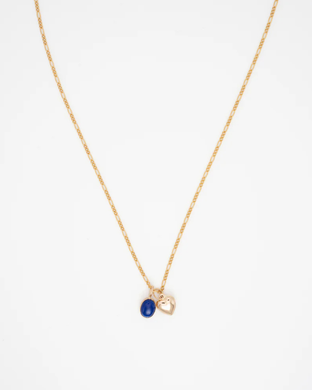 Collier 18" chaîne figaro en or rempli avec deux breloques. Avec rallonge de 2.5".